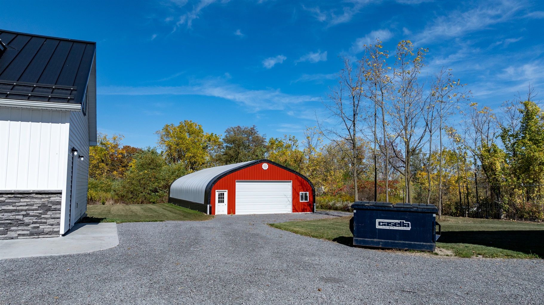 Red barn and white garage — a true countryside setting made for peaceful getaways
