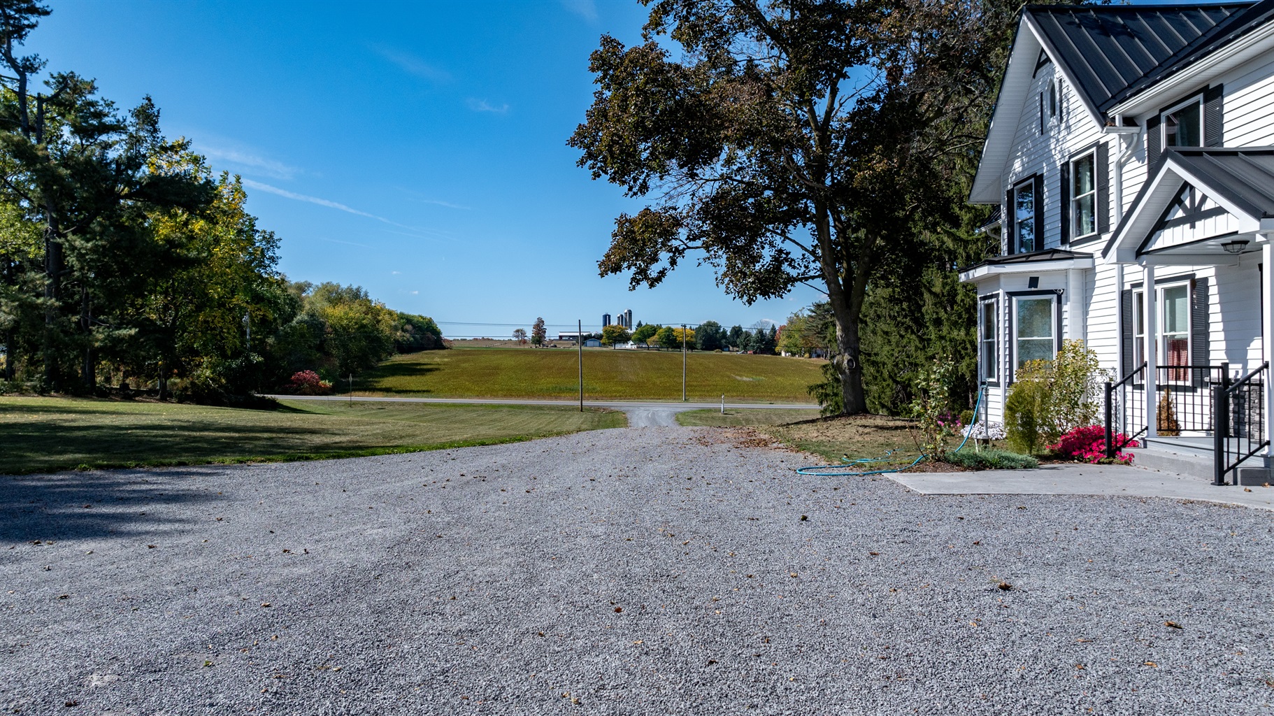 Peaceful driveway leading to open skies and lake views — welcome to your quiet country retreat