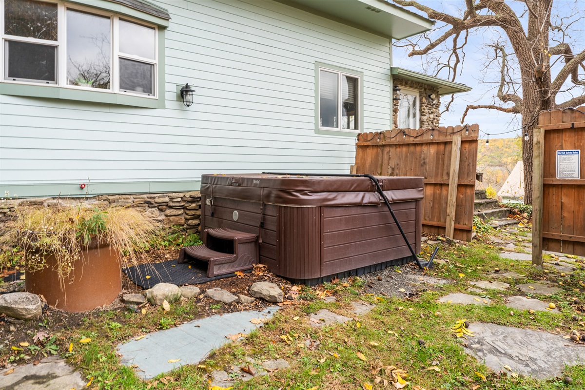 Outside, the home sits on a sprawling 25-acre lot, complete with a peaceful creek that runs through the property. Take a seat by the fire pit and listen to the running stream, soak up the sun, or simply relax in the hot tub and take in some views. With its convenient location and luxurious amenities, this modern home is the perfect choice for your next Finger Lakes getaway. 🌳🔥♨️