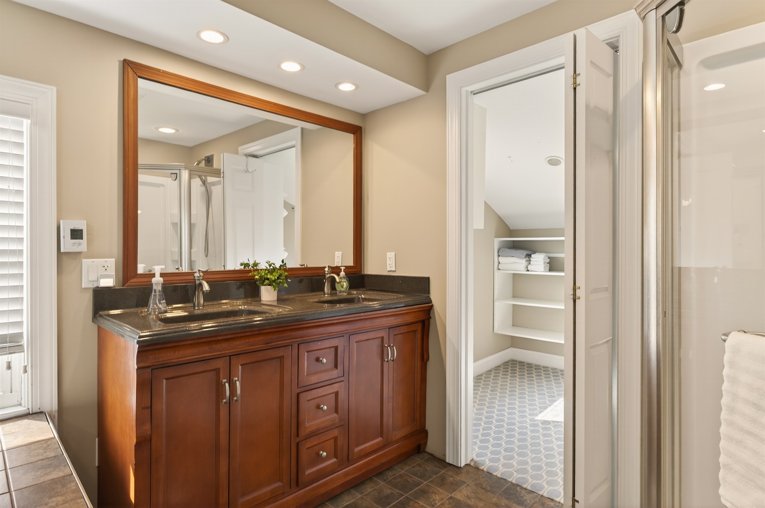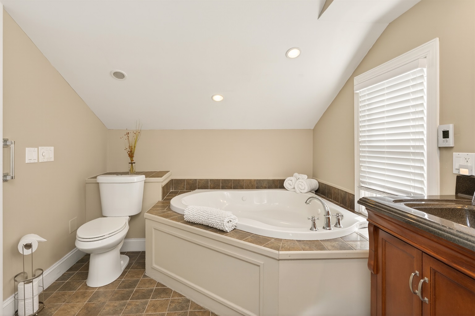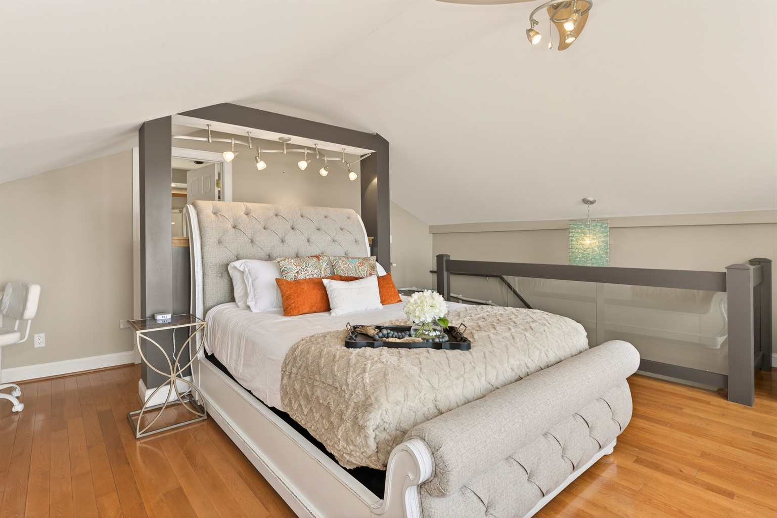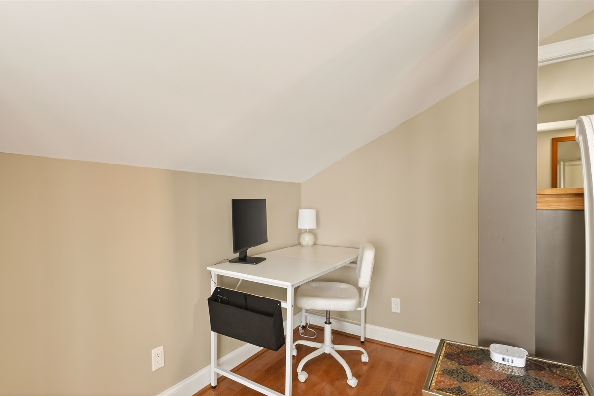 Upstairs, the loft-style bedroom offers a cozy, private retreat with its own luxury bath complete with a jetted soaking tub, double vanities, separate shower, and a spacious walk-in closet.