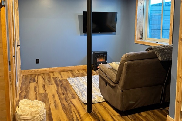 Inside, the home features two spacious and tastefully decorated bedrooms, along with one and a half modern bathrooms, offering comfort and convenience for couples, small families, or a few friends. The open-concept main floor is thoughtfully designed, combining a cozy living area with a well-equipped kitchen that’s ideal for cooking meals or simply relax in the newly added sauna in the finished basement after a day of adventure.