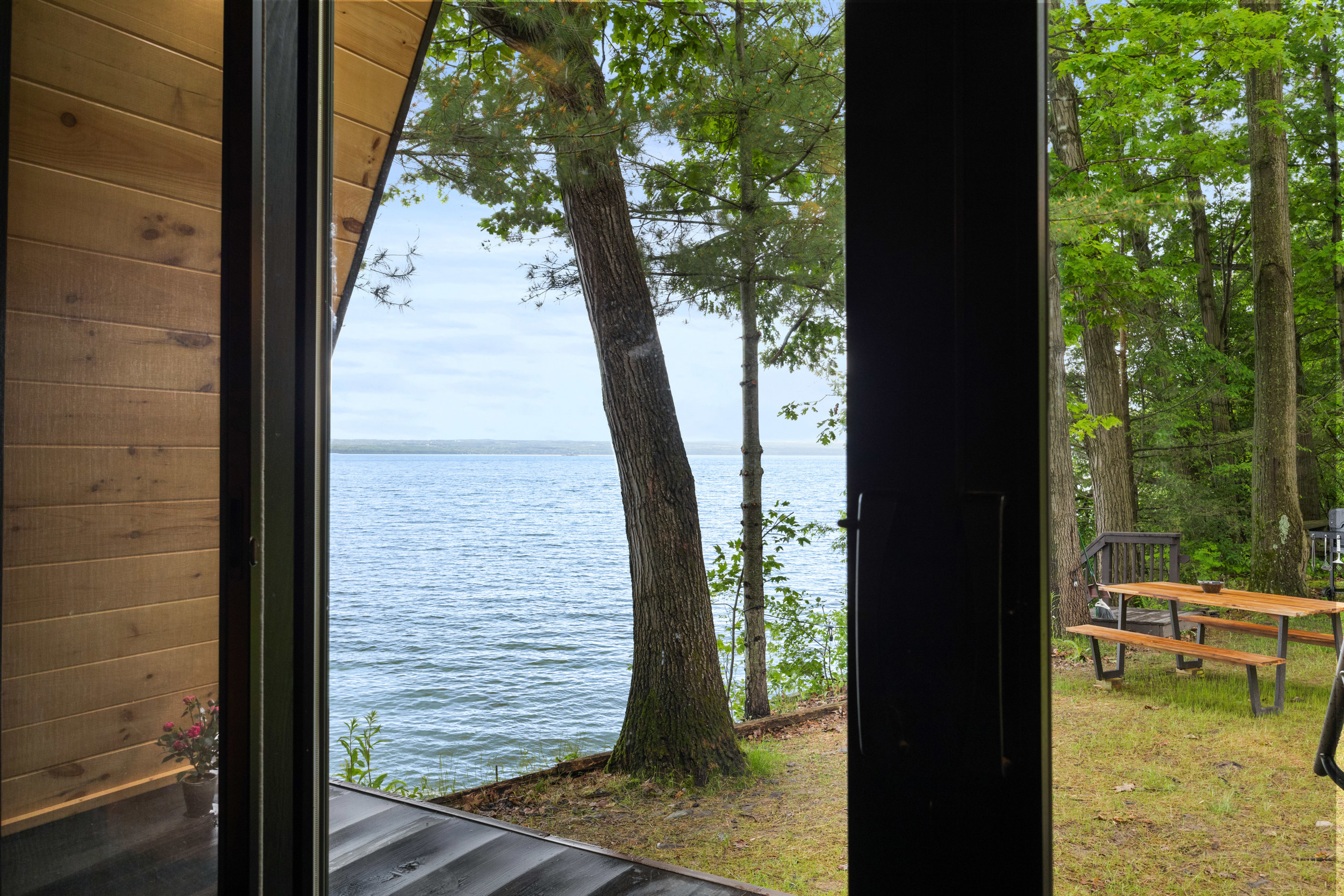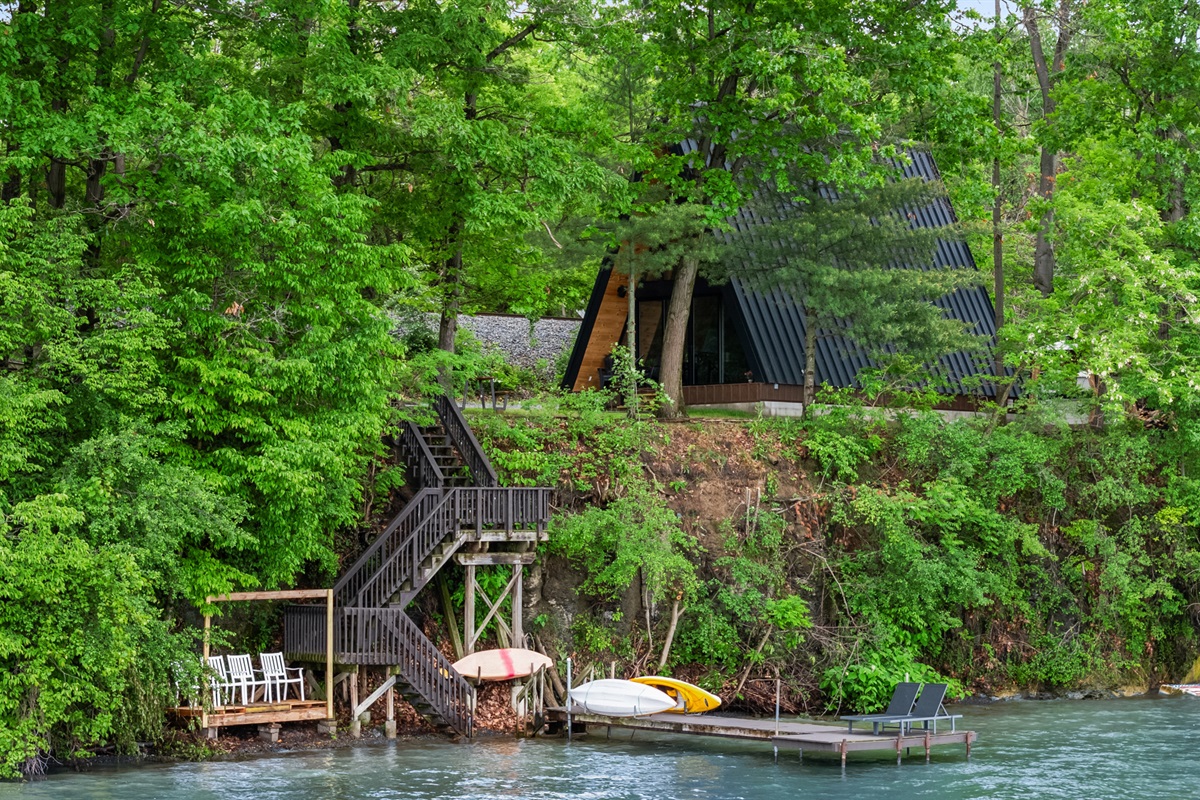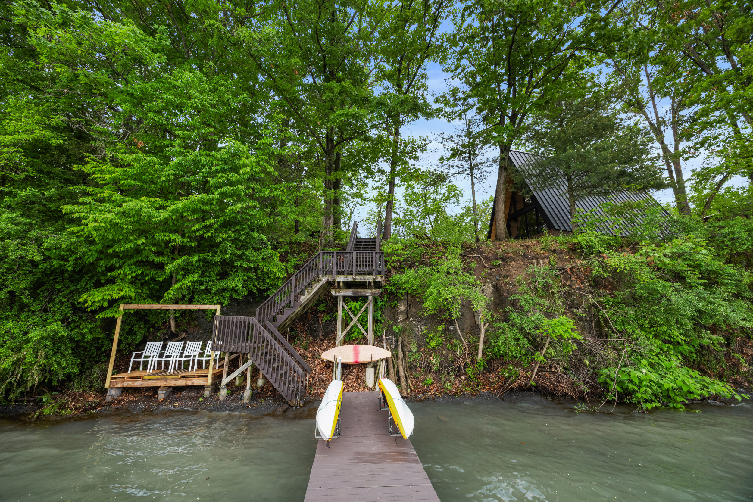 2 Bedrooms • 2 Bathrooms 2 Baths • Sleeps 2-4Modern A-frame set directly on Seneca Lake, offering a clean, design-forward space with floor-to-ceiling windows and beautiful water views. Tucked on a quiet dead-end road, it’s ideal for couples or small groups looking for a peaceful escape.