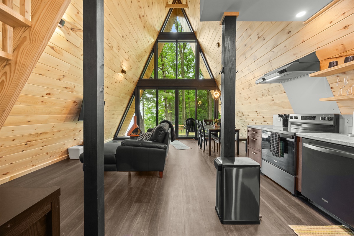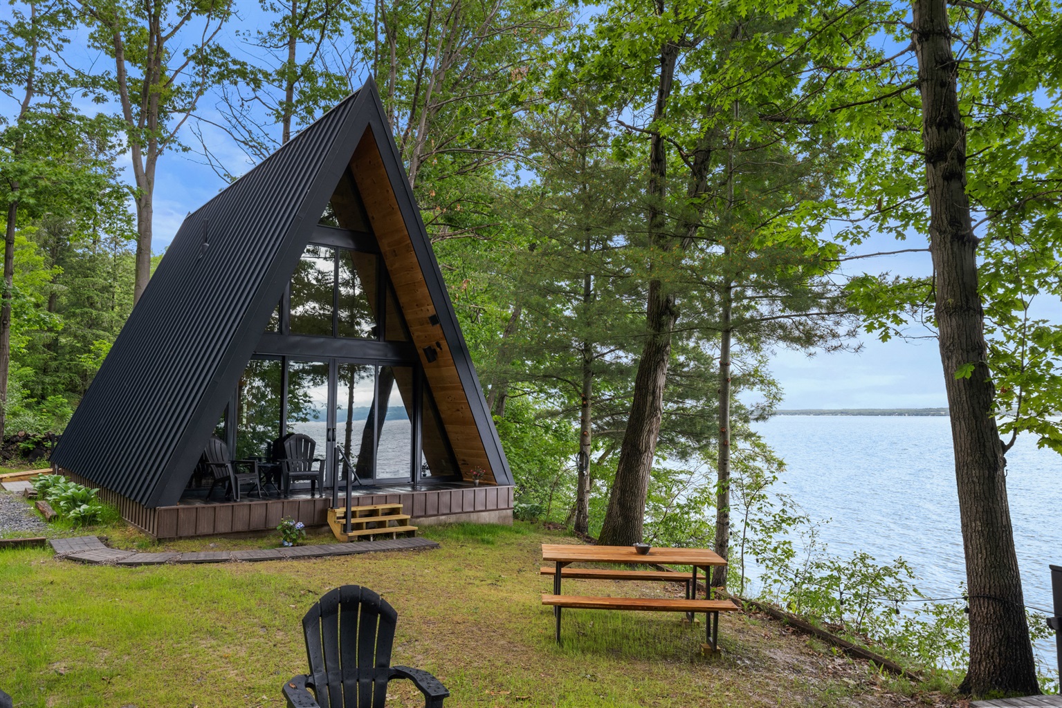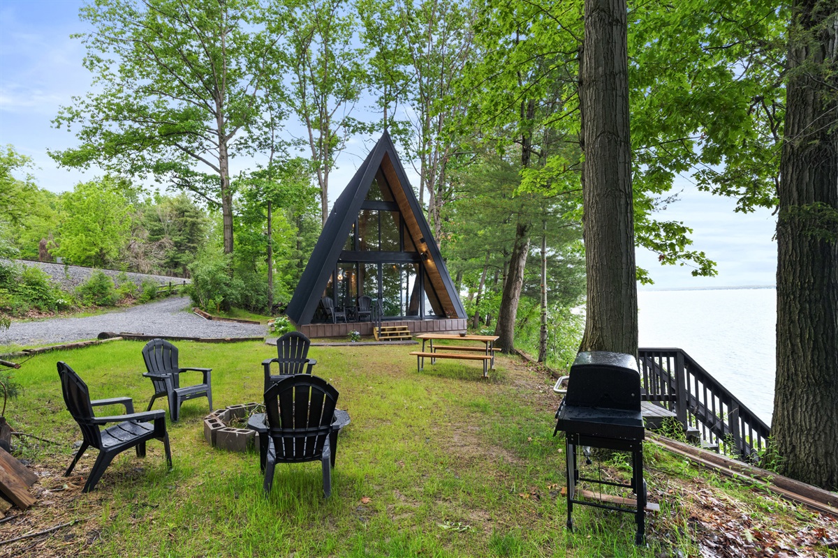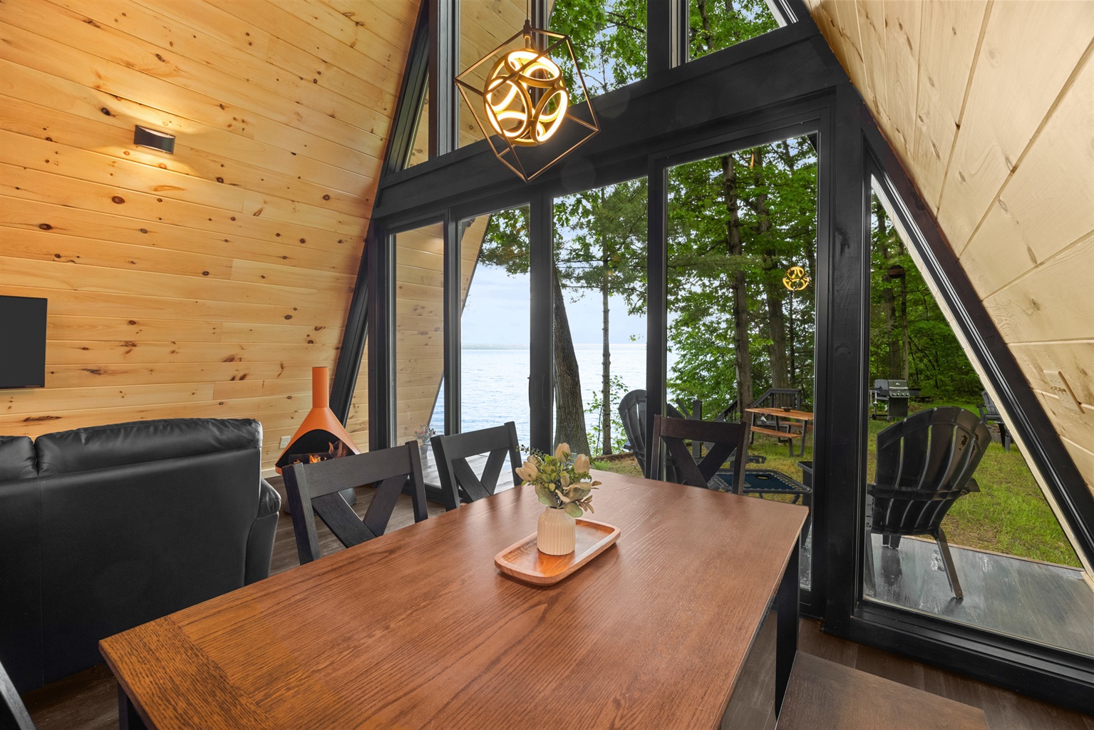 2 Bedrooms • 2 Bathrooms 2 Baths • Sleeps 2-4Modern A-frame set directly on Seneca Lake, offering a clean, design-forward space with floor-to-ceiling windows and beautiful water views. Tucked on a quiet dead-end road, it’s ideal for couples or small groups looking for a peaceful escape.