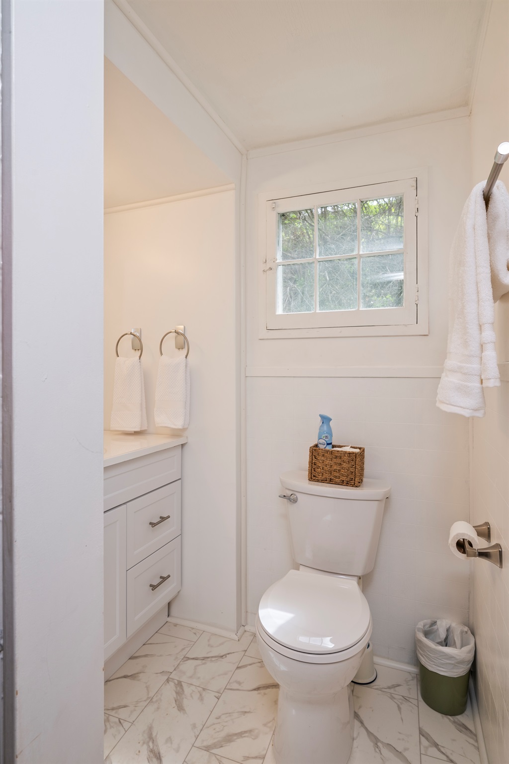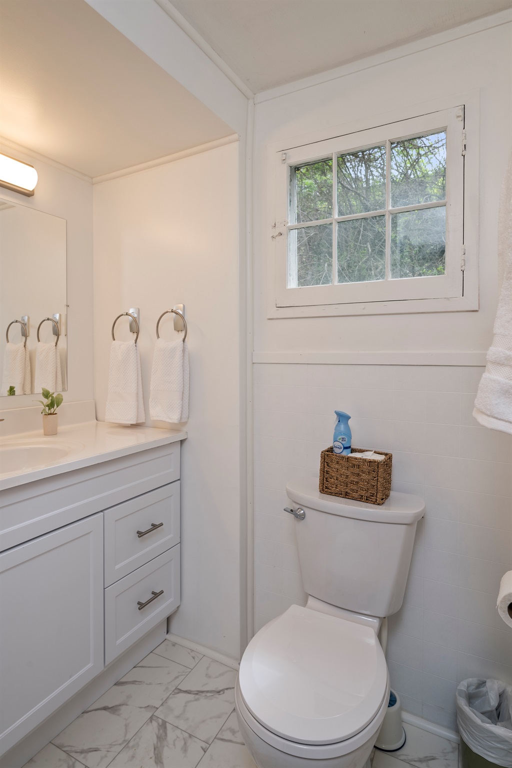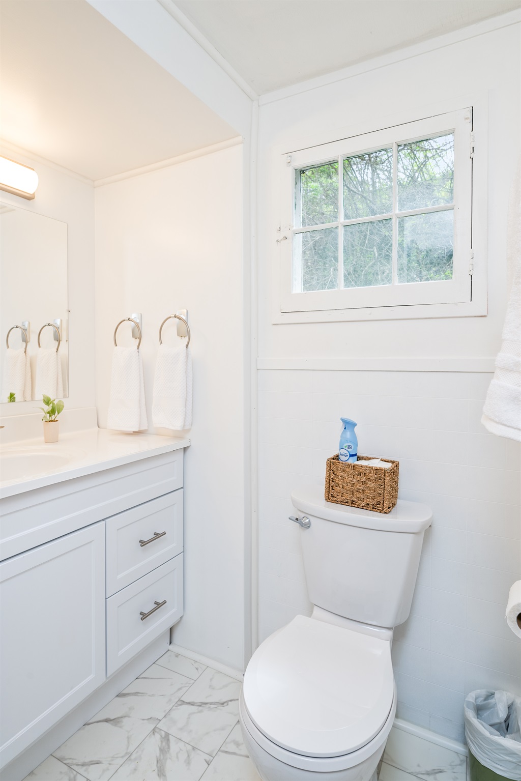 A beautifully designed bathroom offering modern comforts with classic charm. Fresh towels and elegant details make it a relaxing space!