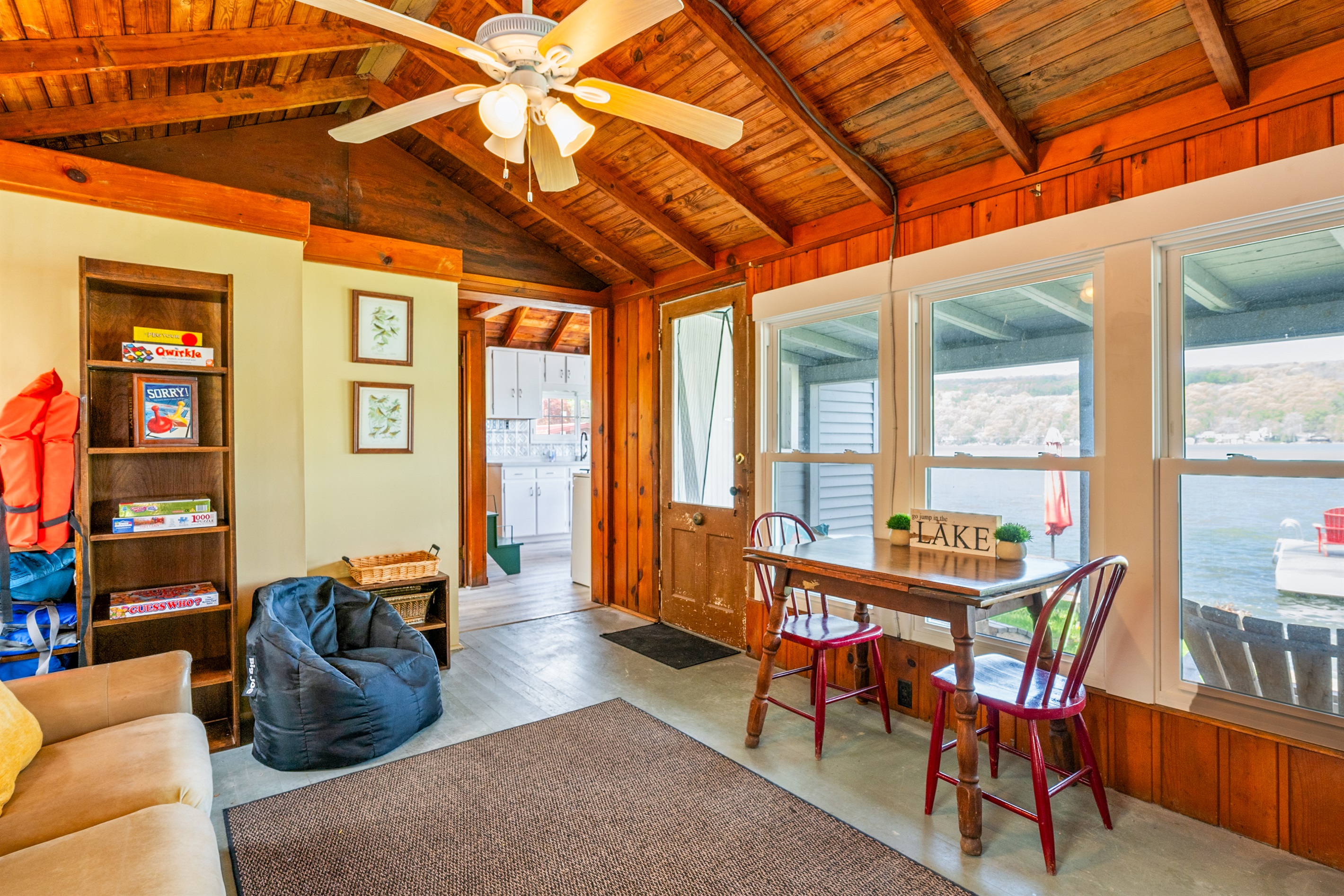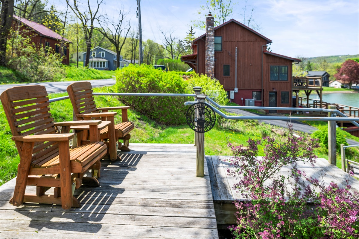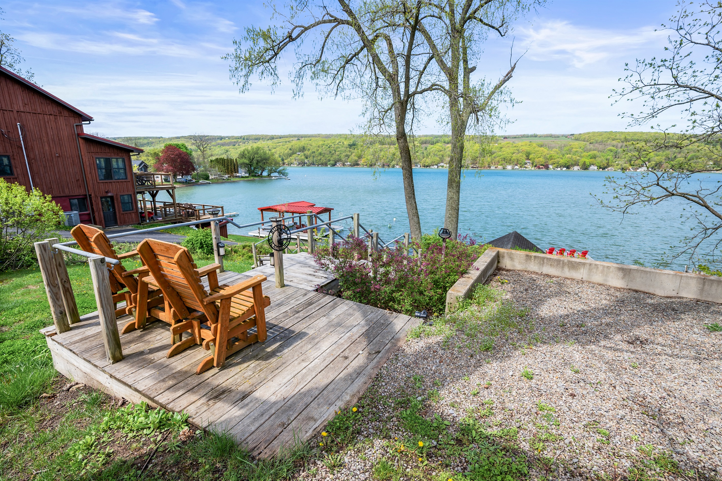 Unwind on the deck overlooking the sparkling lake — ideal for grilling, lounging, and soaking up Finger Lakes serenity.