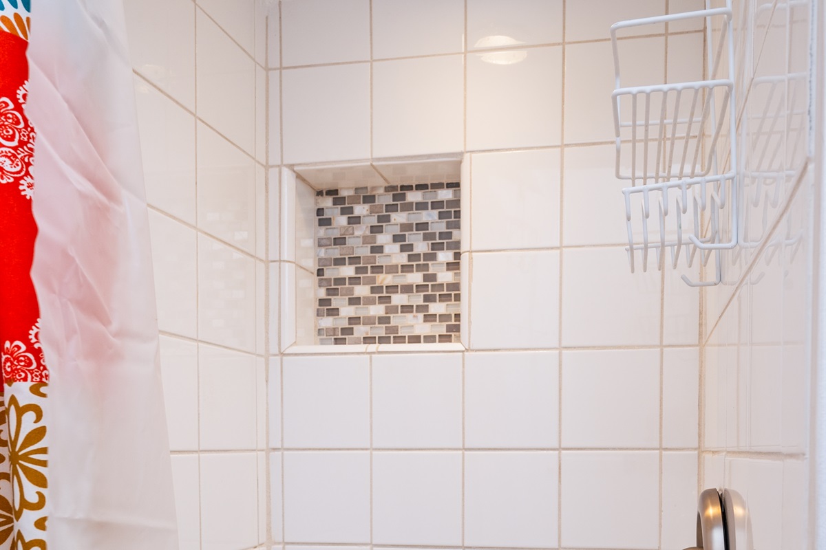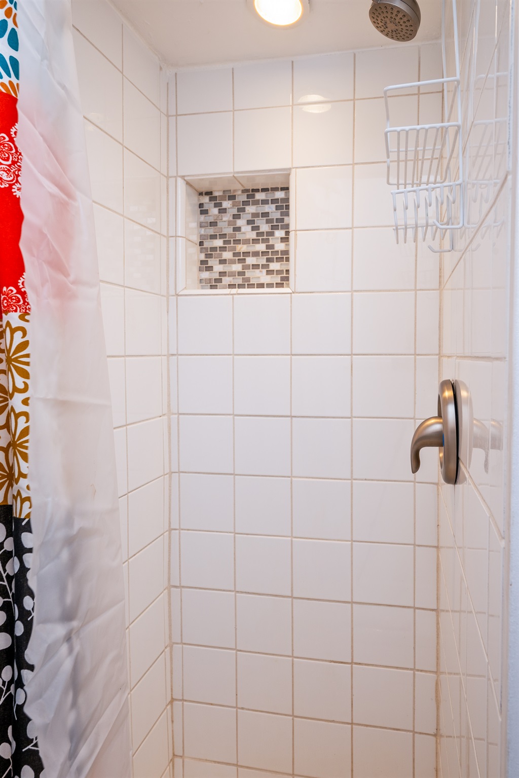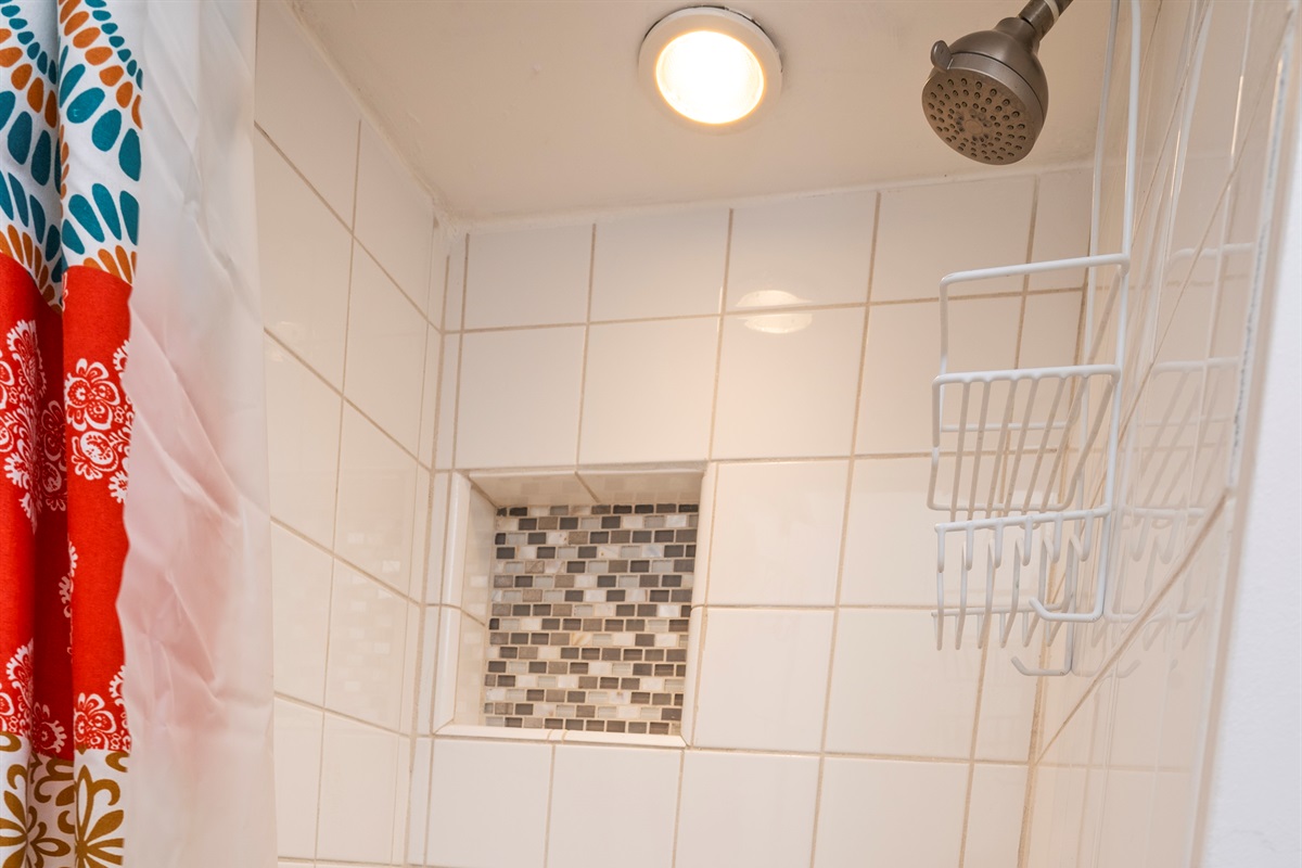 This inviting bathroom features a roomy shower, fresh linens, and thoughtful decor touches for a comfortable stay.