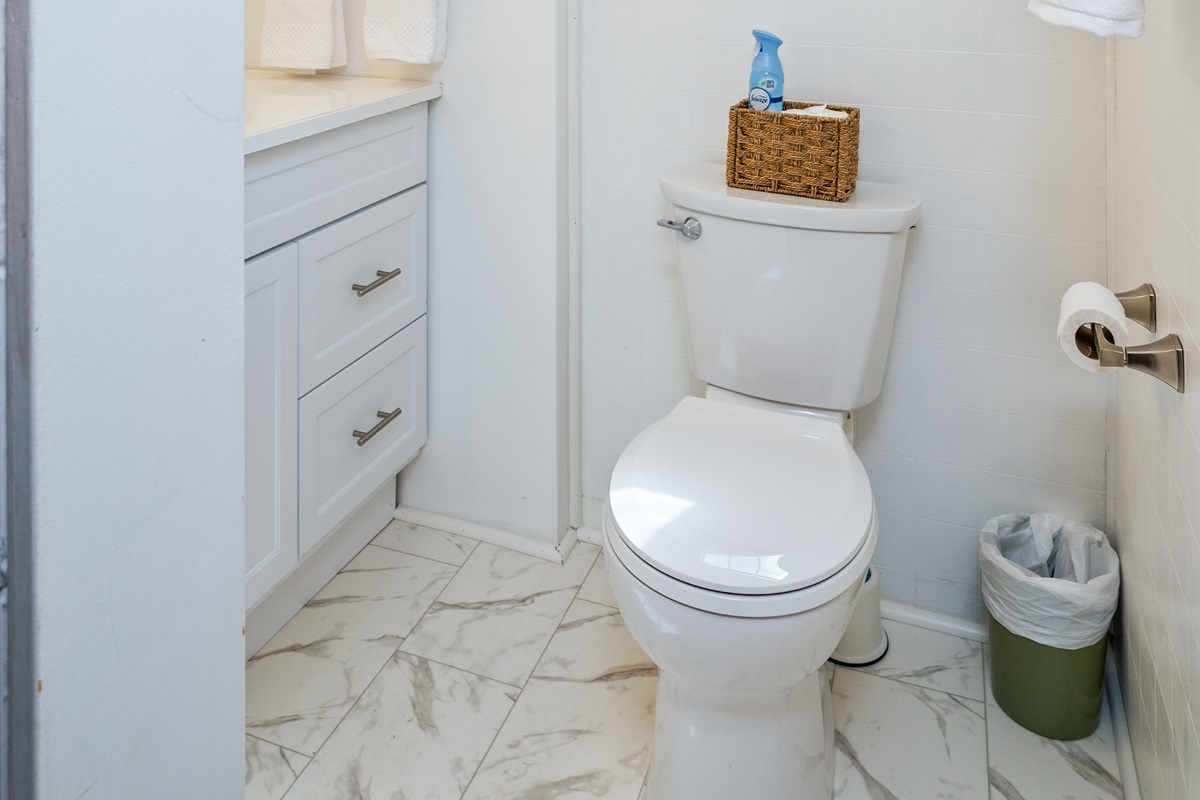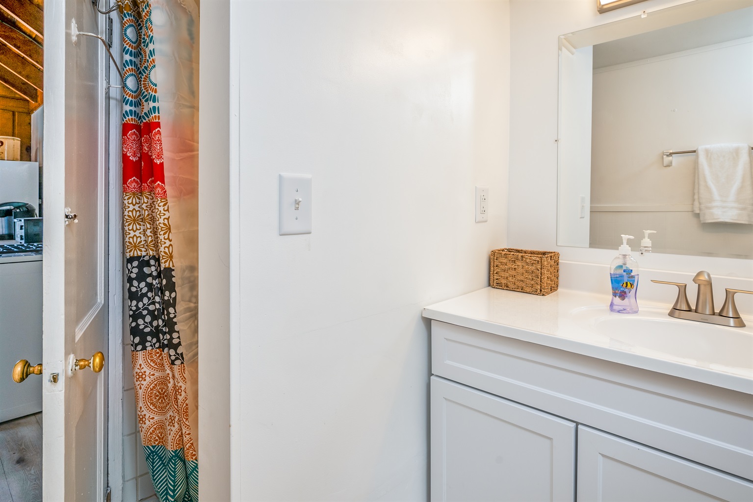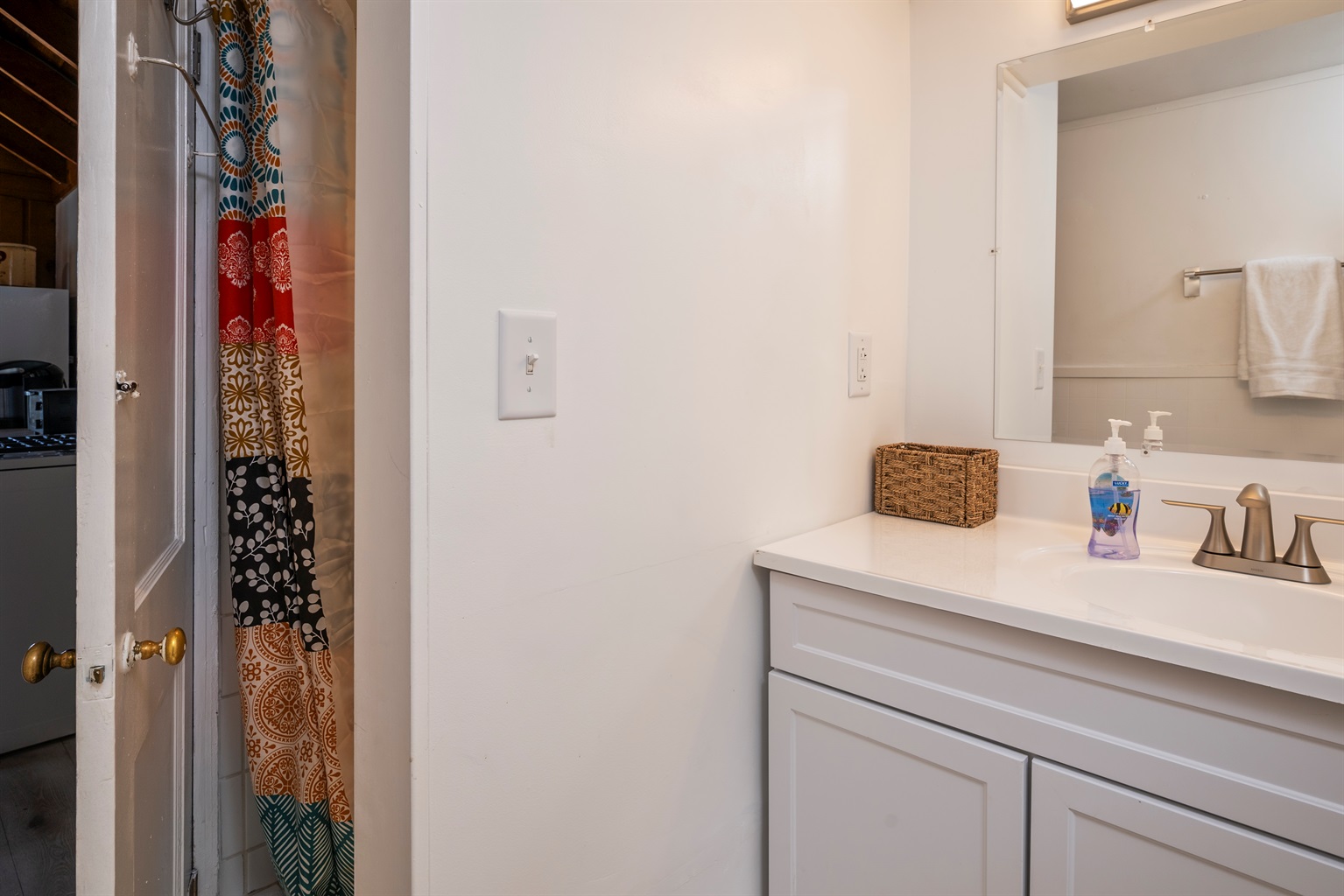 This inviting bathroom features a roomy shower, fresh linens, and thoughtful decor touches for a comfortable stay.