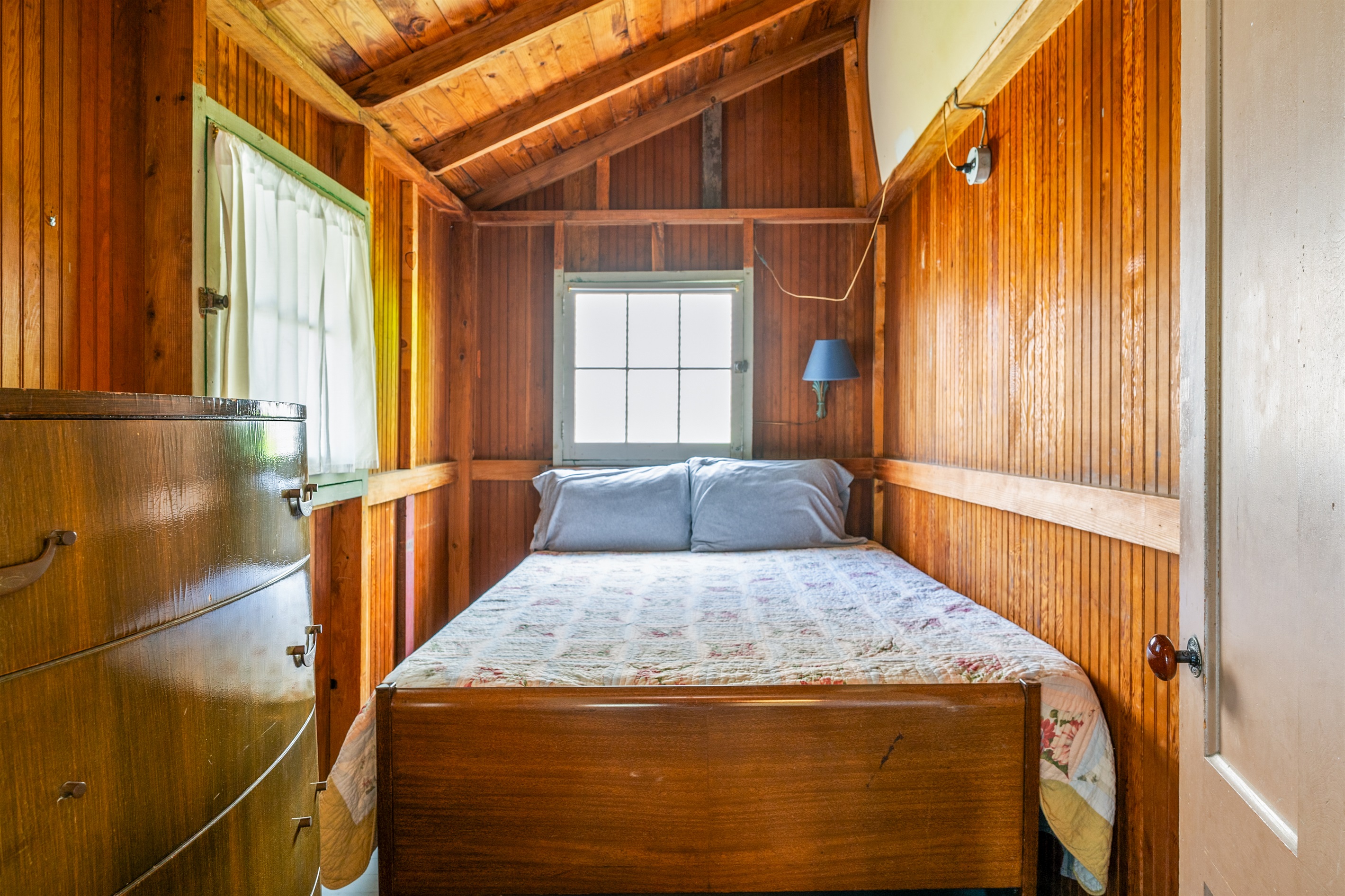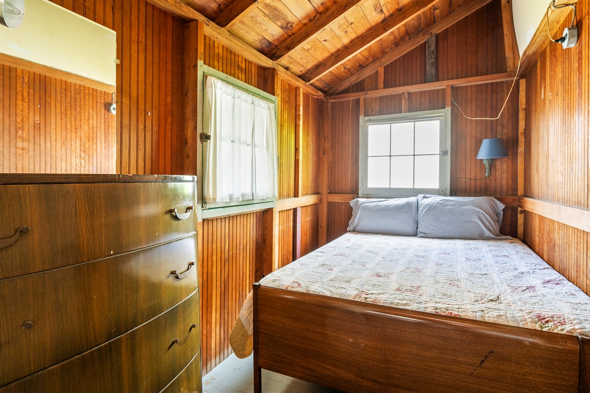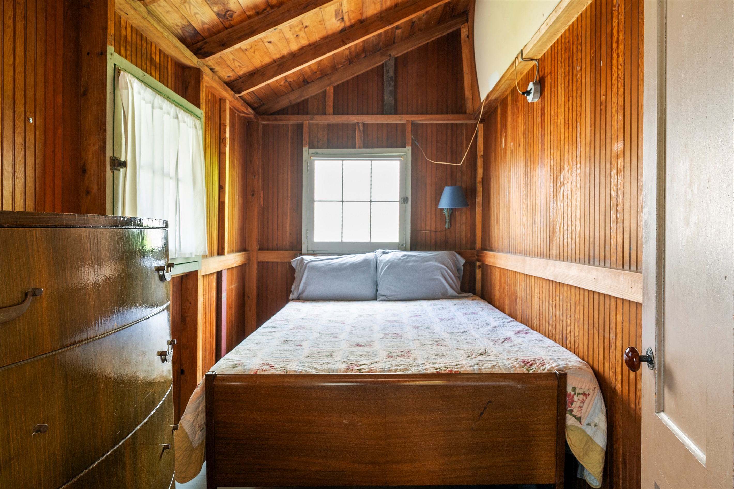 This thoughtfully designed master suite blends classic charm with modern comfort, perfect for unwinding after a day of lakeside adventures.
