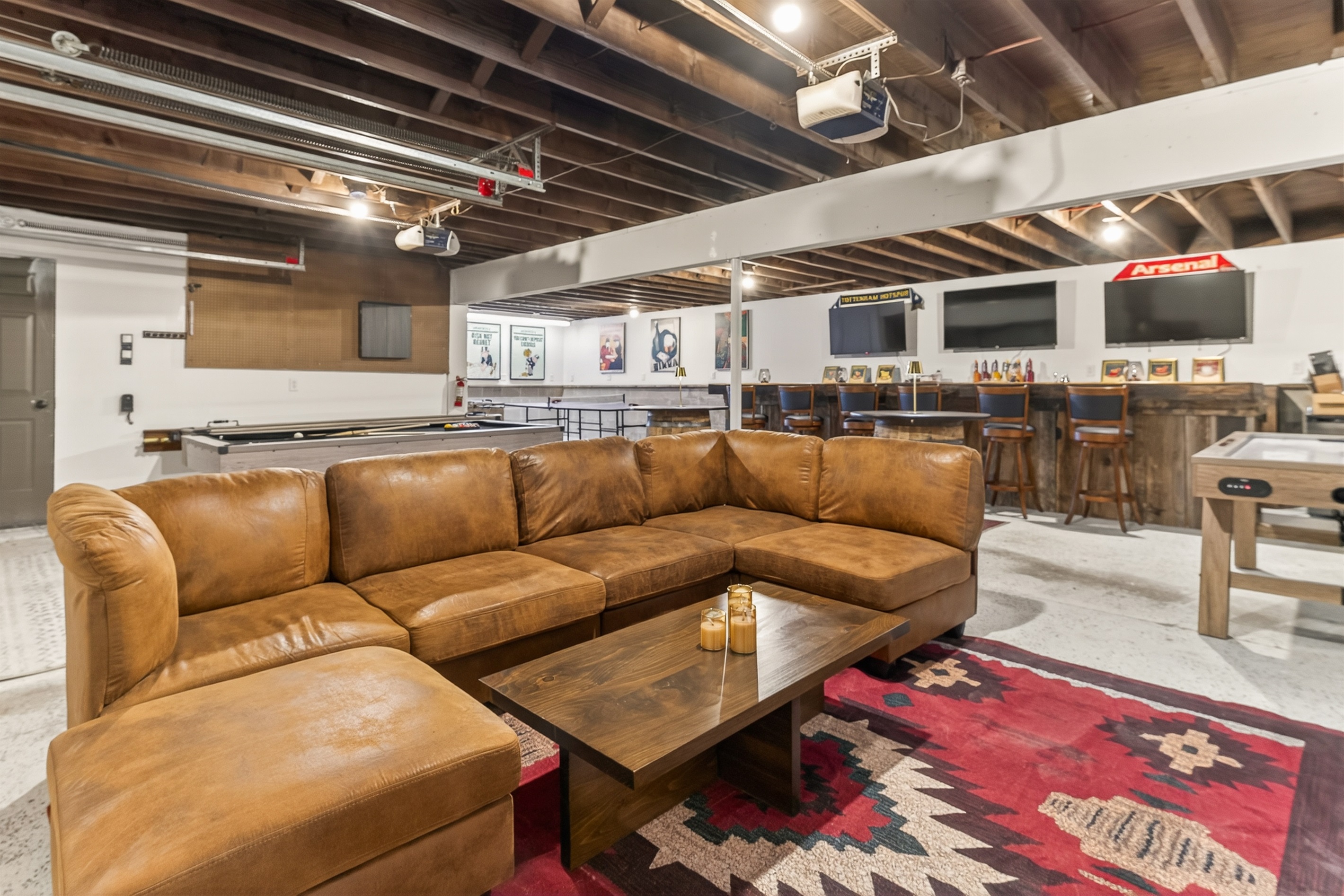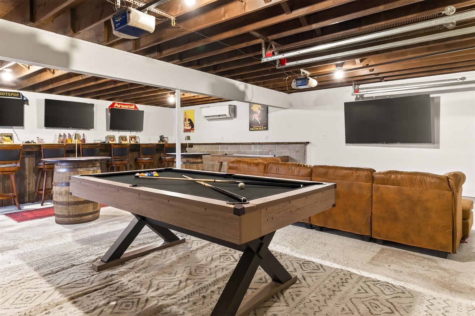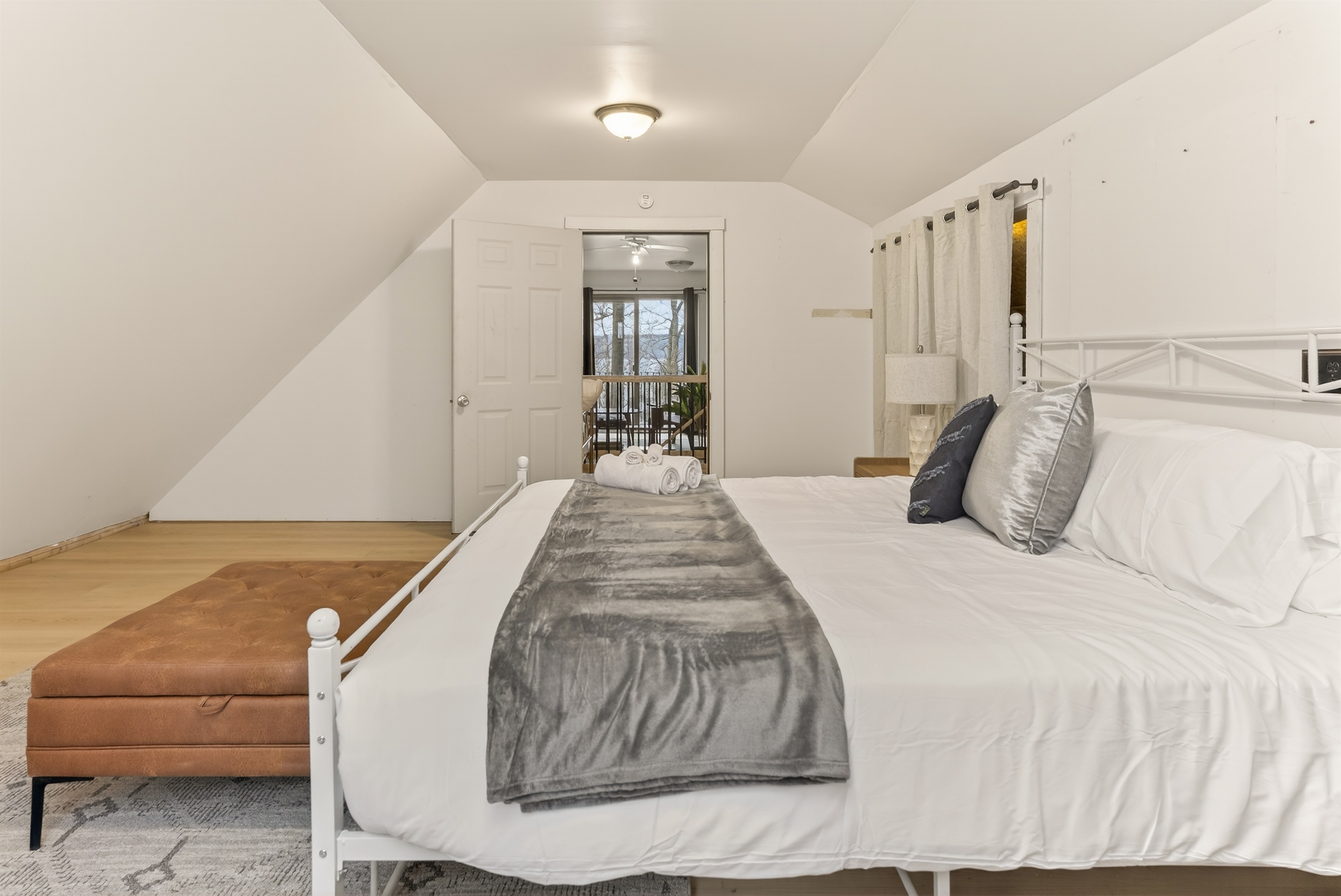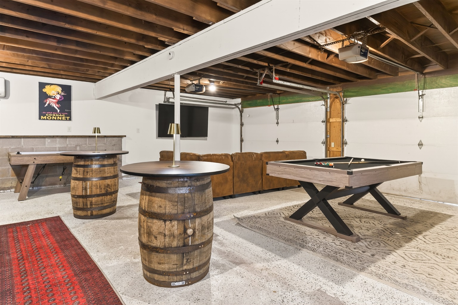 Sleeps 1-10This stunning lakefront retreat on Seneca Lake perfectly combines comfort, style, and relaxation. Ideal for family and friends, the spacious two-story main house sleeps 6 guests and offers everything needed for an unforgettable Finger Lakes getaway. The detached garage includes an upstairs suite with a queen bedroom sleeping 2 additional guests, full bath, and an expansive game room featuring a pool table, ping pong, shuffleboard, foosball, air hockey, poker table, and a large bar.