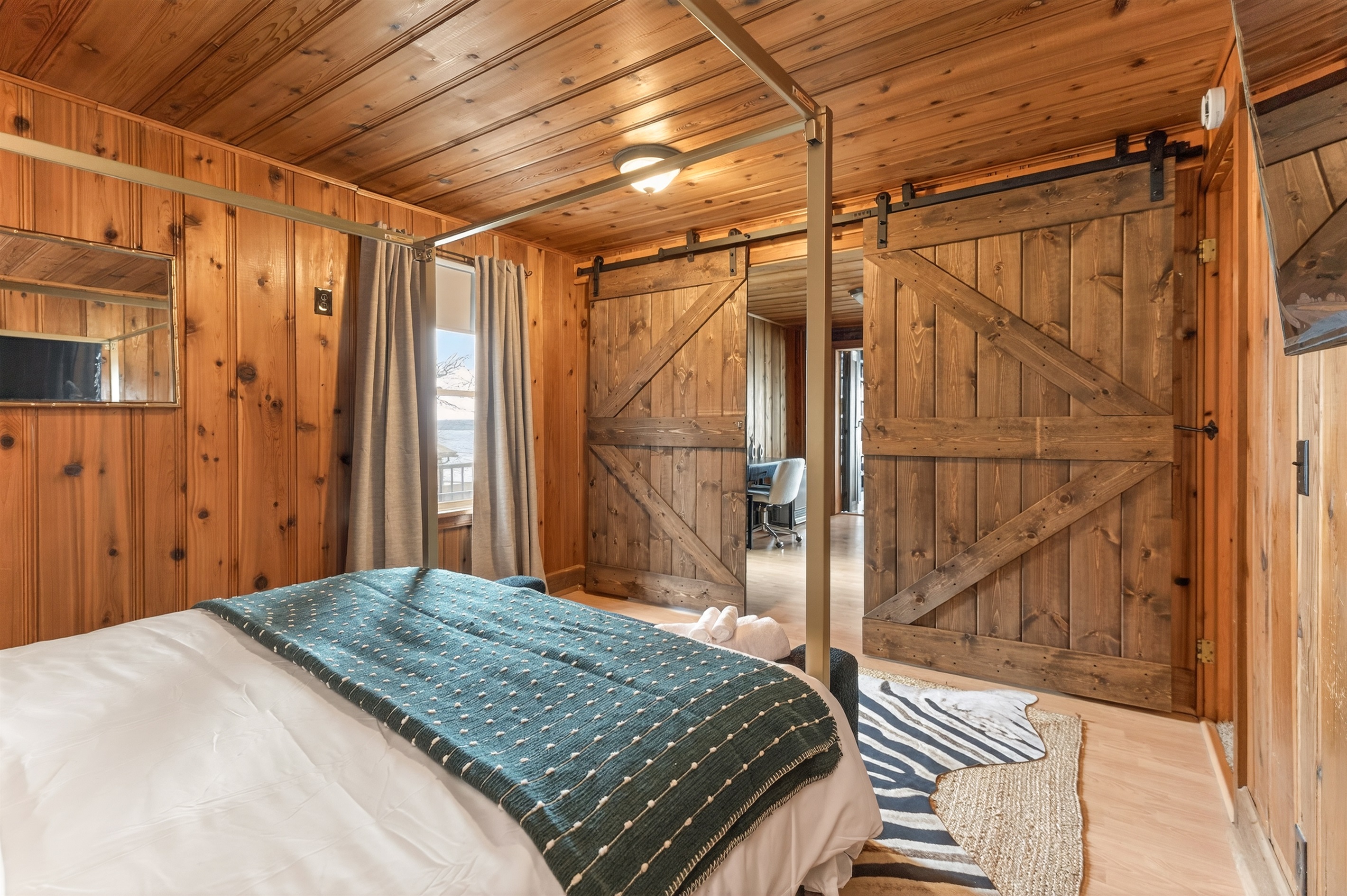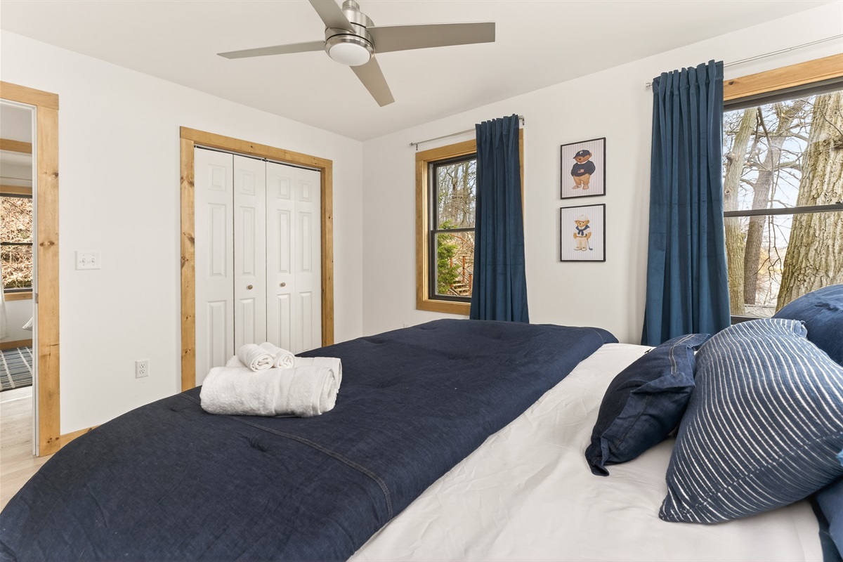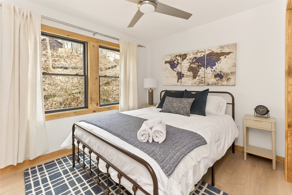 Take in breathtaking lake views from nearly every angle, unwind in the hot tub, or enjoy the sauna while surrounded by serene natural beauty. The main house features a fully stocked kitchen, two queen bedrooms, a king bedroom, a cozy library, two full bathrooms and a large living room with panoramic lake views. Washer and dryer access is conveniently located in the garage suite.