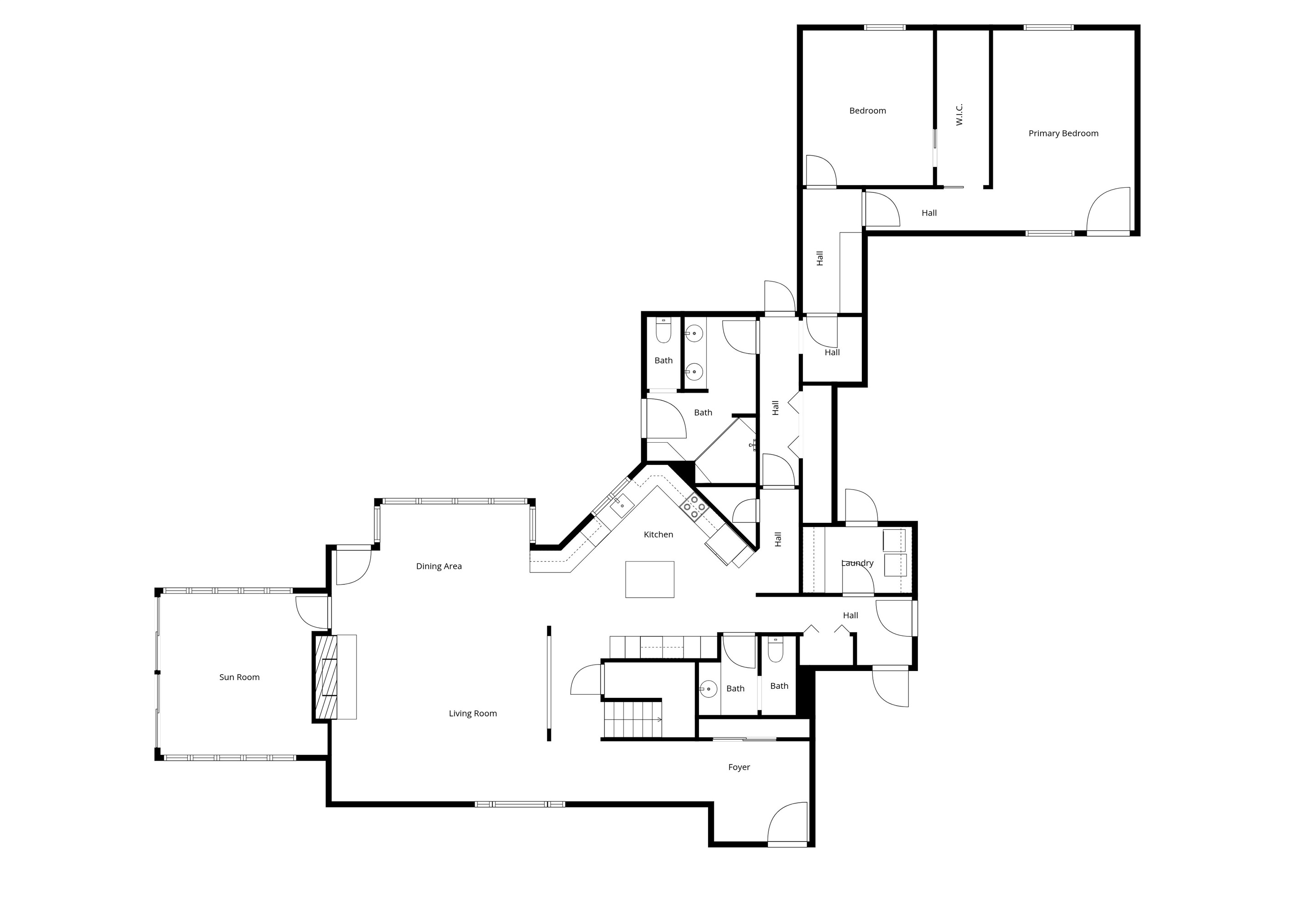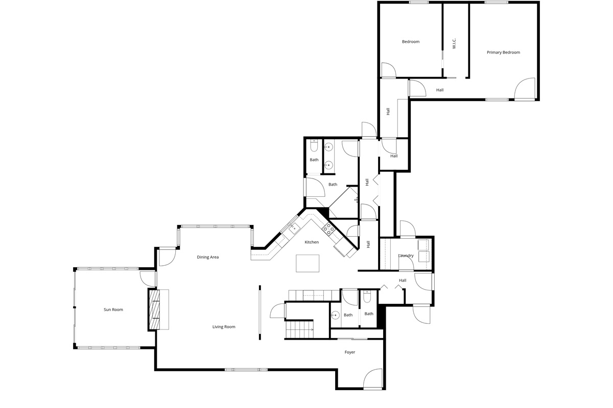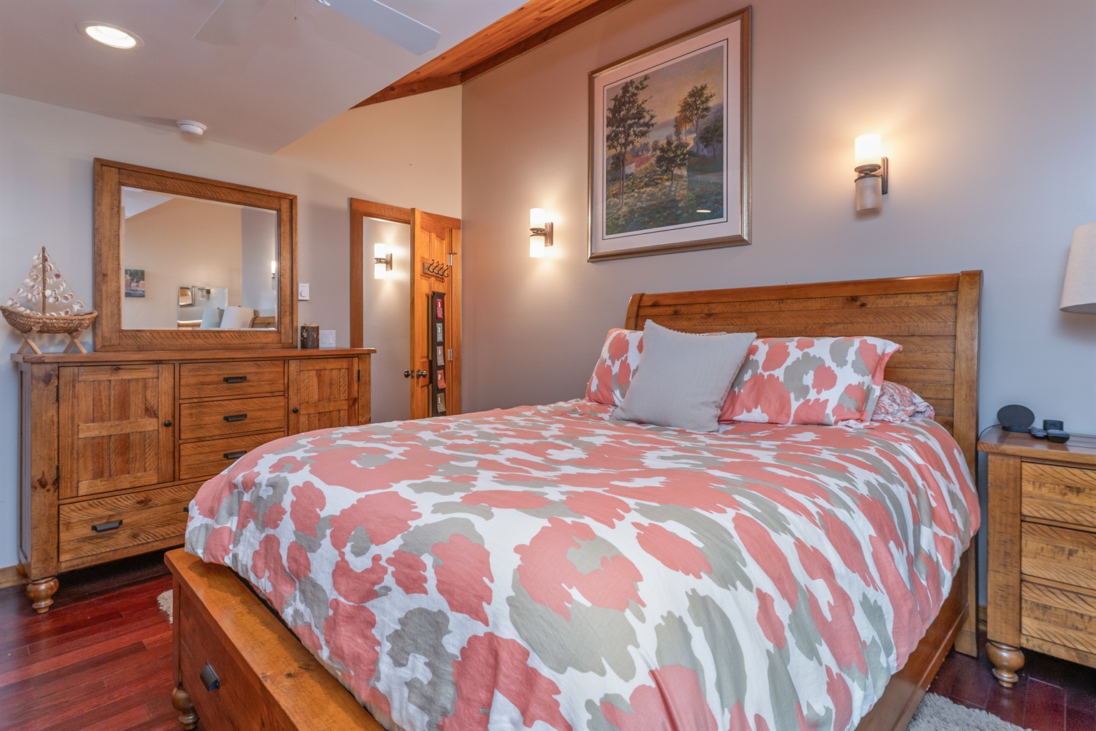 The fully equipped kitchen is designed for both casual and large-scale meal prep, with ample counter space, modern appliances, and everything you need to cook up family favorites or entertain friends. Adjacent to the kitchen, you’ll find a convenient laundry area to make longer stays easy and stress-free. Just down the hall, a full bathroom with double sinks and a spacious walk-in shower provides comfort and convenience, with direct access to the deck and seasonal pool—ideal for a quick rinse after swimming or a relaxing soak in the sun. The main floor also includes a wing with a king bedroom and a queen bedroom, offering comfortable accommodations for family or friends.