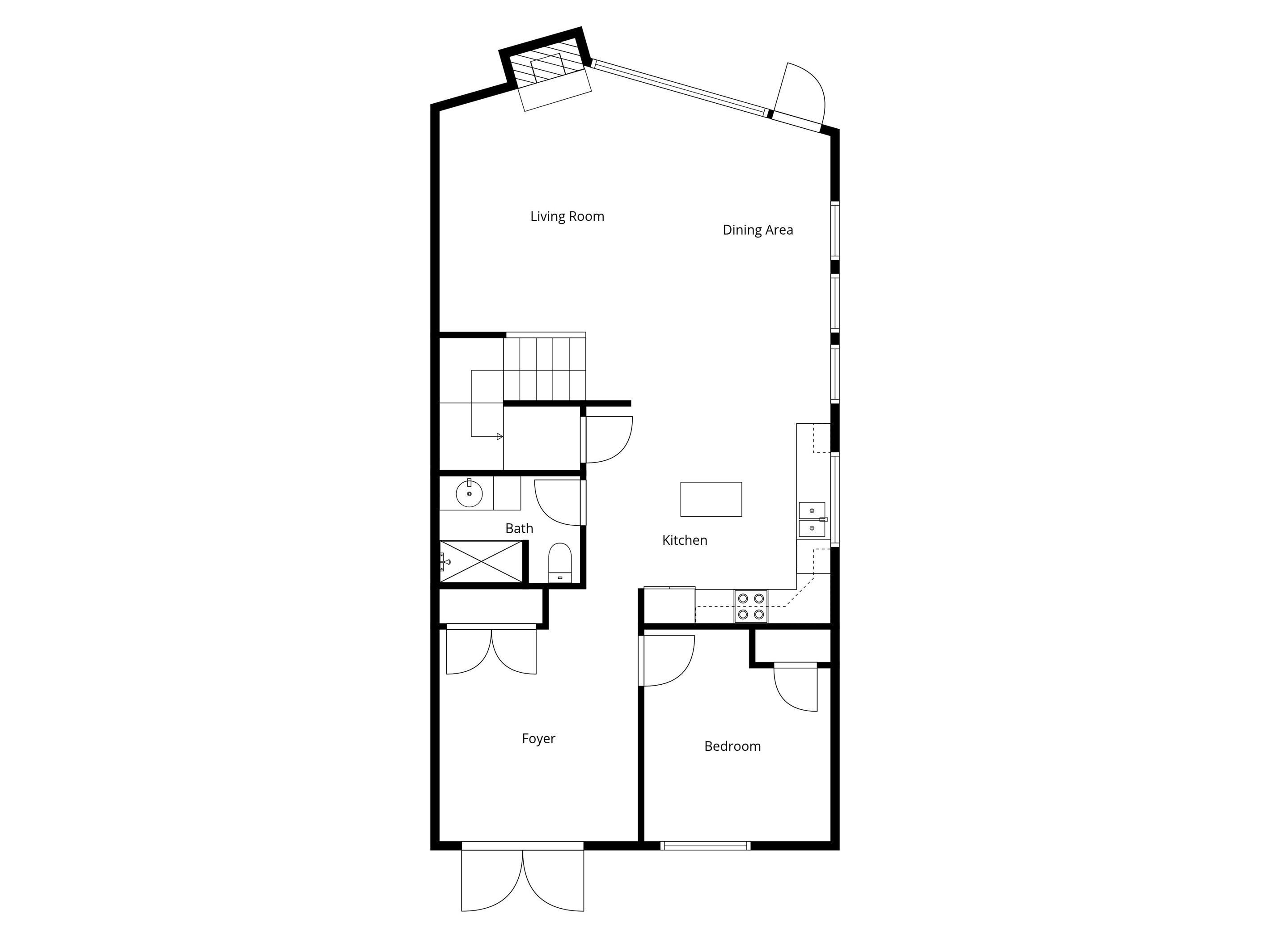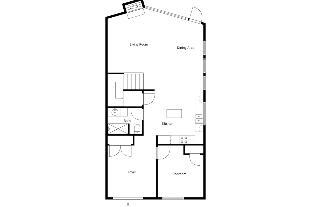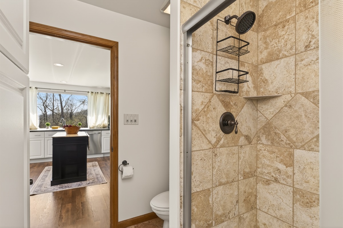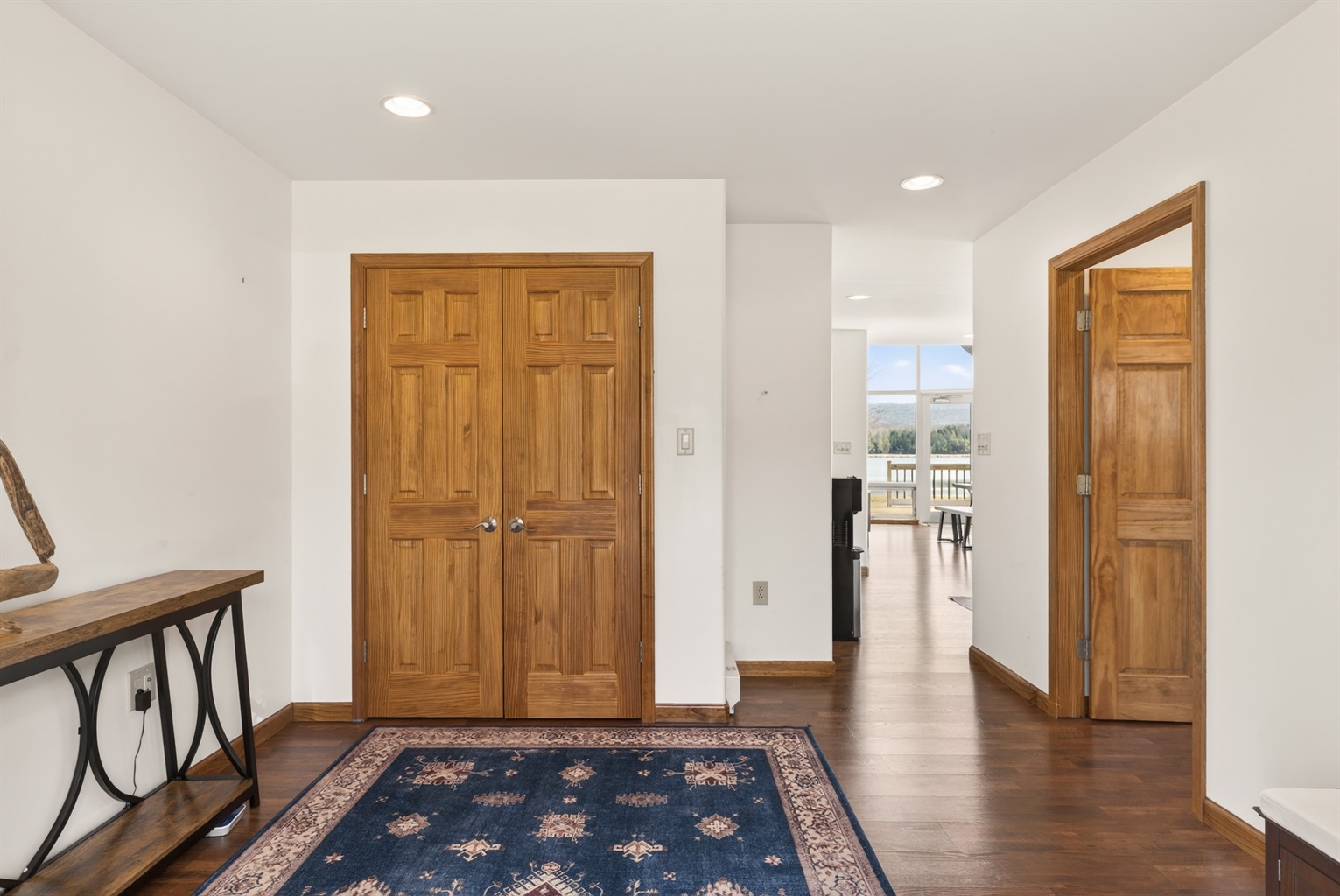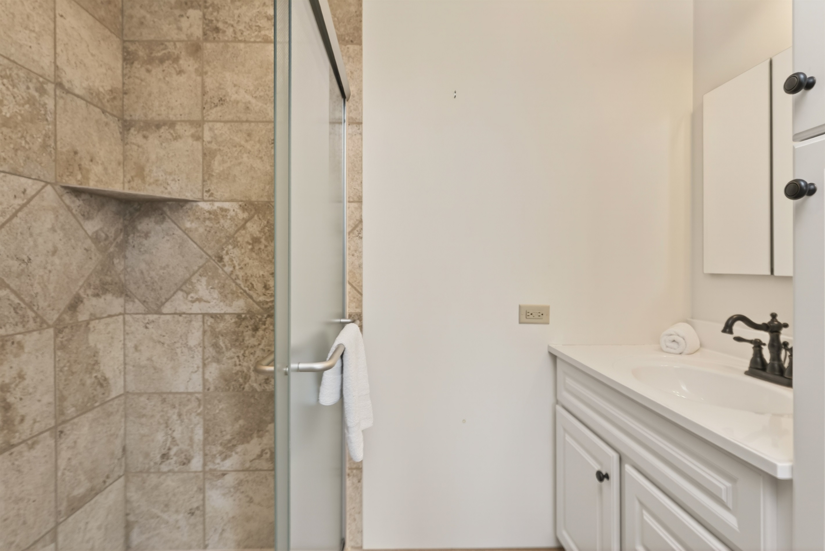 As you enter the home, you are immediately greeted by stunning lake views. The main level features a bunk room with a full-over-queen bed, a full bathroom, and an open-concept kitchen and living area—allowing you to stay connected with your group while preparing meals and enjoying the peaceful water views.