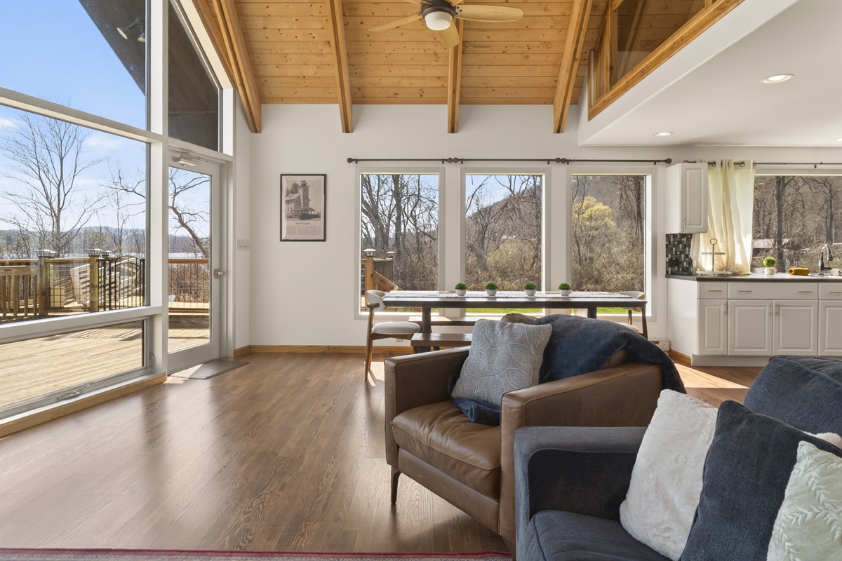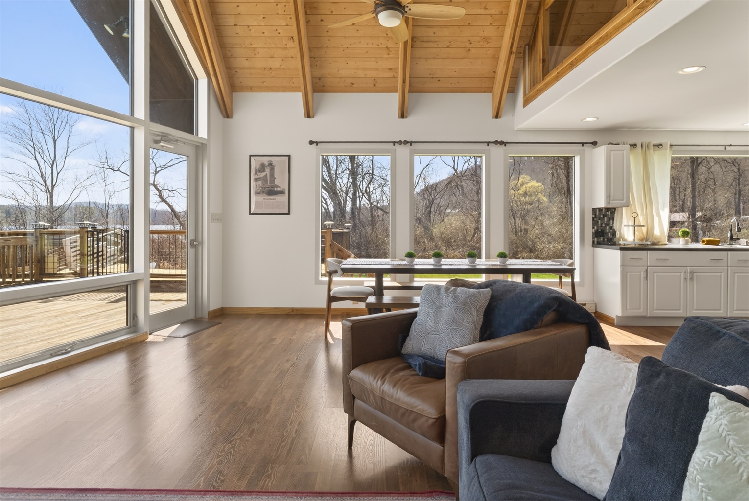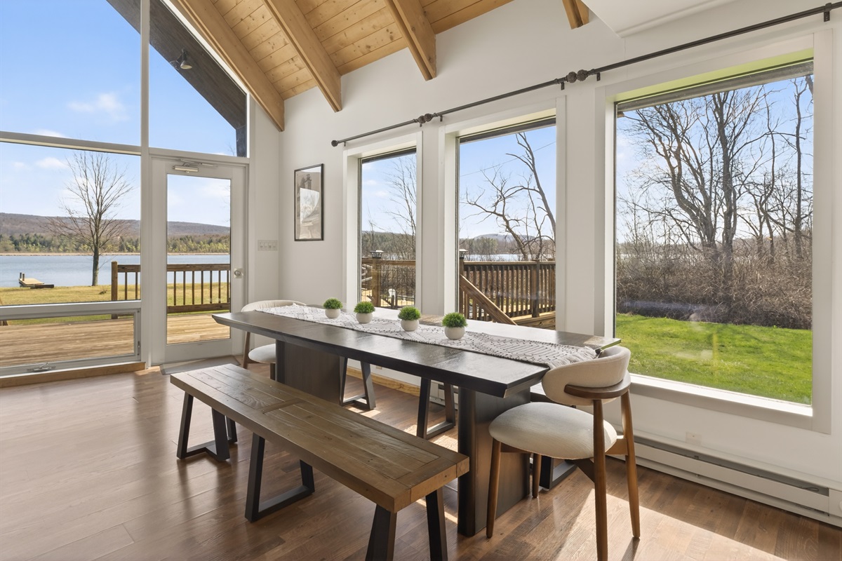 Step outside onto the sprawling deck to soak up the sun, or relax in the gazebo with a glass of local wine from one of the many nearby wineries. Enjoy watching the eagles fly across the lake while kayaking in this quiet part of the lake (Please note: swimming in the lake is not recommended due to its shallow, muddy bottom.)