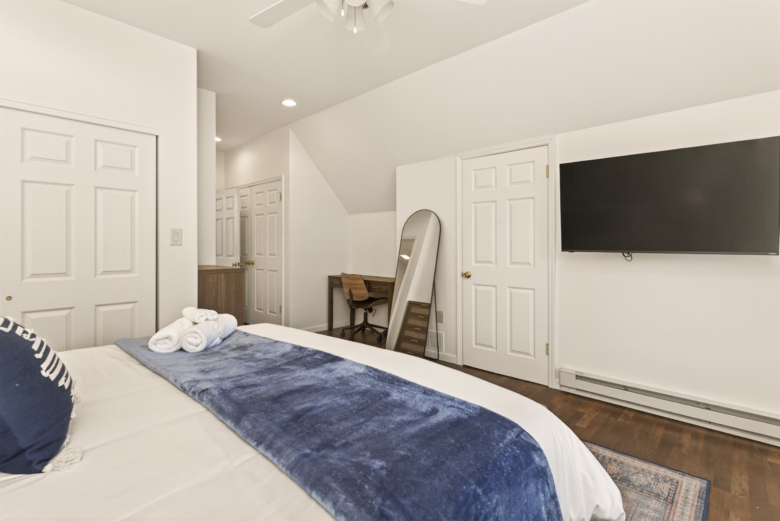 Upstairs, you’ll find a private primary suite complete with an ensuite bathroom, offering a comfortable and secluded retreat.