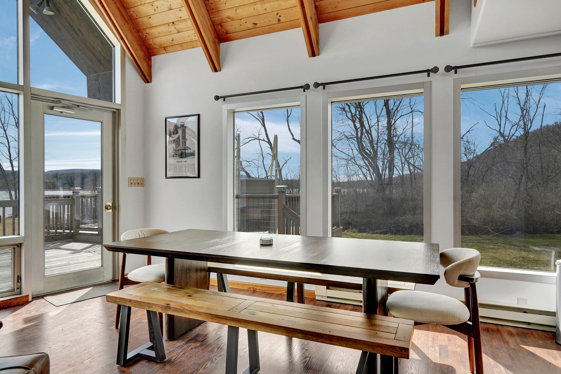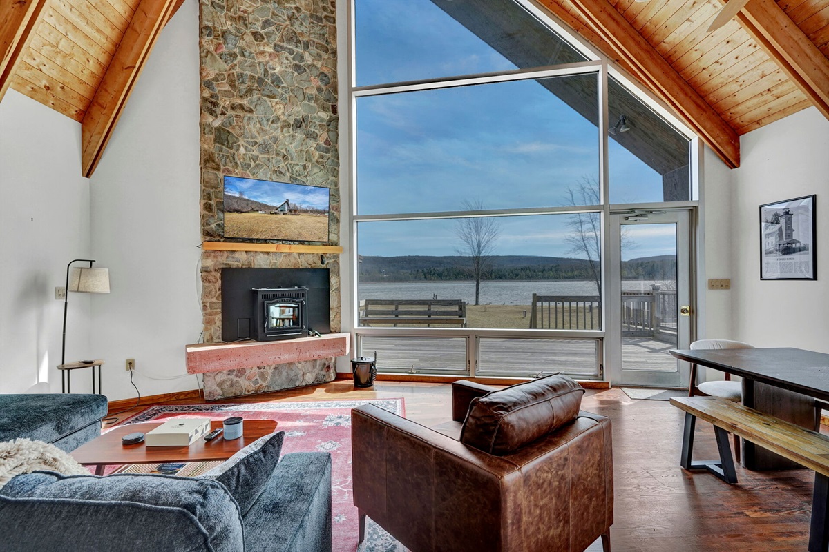 Step outside onto the sprawling deck to soak up the sun, or relax in the gazebo with a glass of local wine from one of the many nearby wineries. During warmer months, cool off in the seasonal above-ground pool. (Please note: swimming in the lake is not recommended due to its shallow, muddy bottom.)