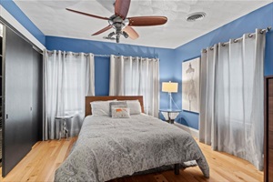 Each bedroom offers fresh bedding, ceiling fans, and storage space. Select rooms include Smart TVs and private bathrooms.