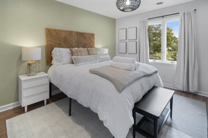 Two full contemporary bathrooms on the second floor and one half-bath on the first floor allow guests to spread out and enjoy their own space. The master bathroom offers a tub and shower combo, while the second full bathroom offers a tiled walk-in shower. Each bathroom is appointed with a hair dryer, paper products, and hand soap, but be sure to bring your own toiletries, including shampoo, conditioner, and body wash. 🚿🛁🧴