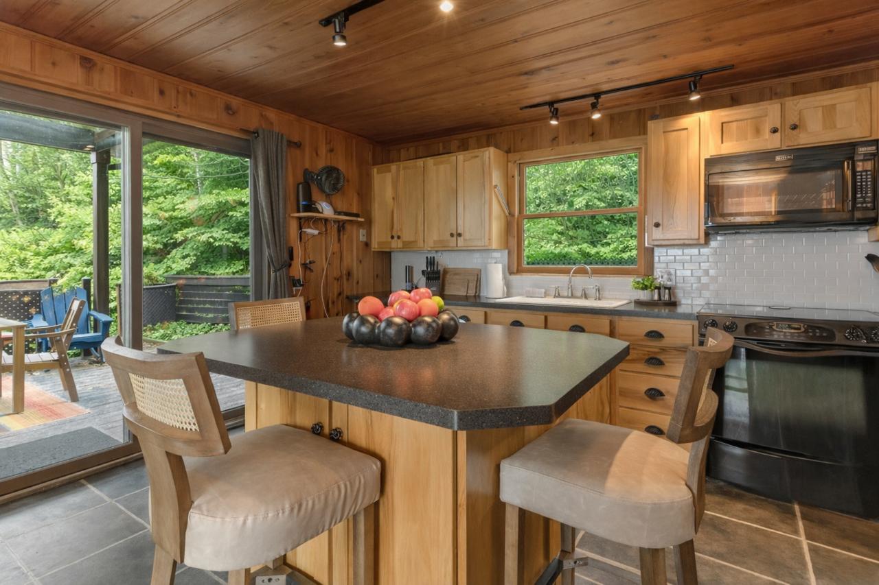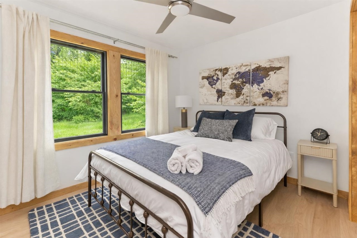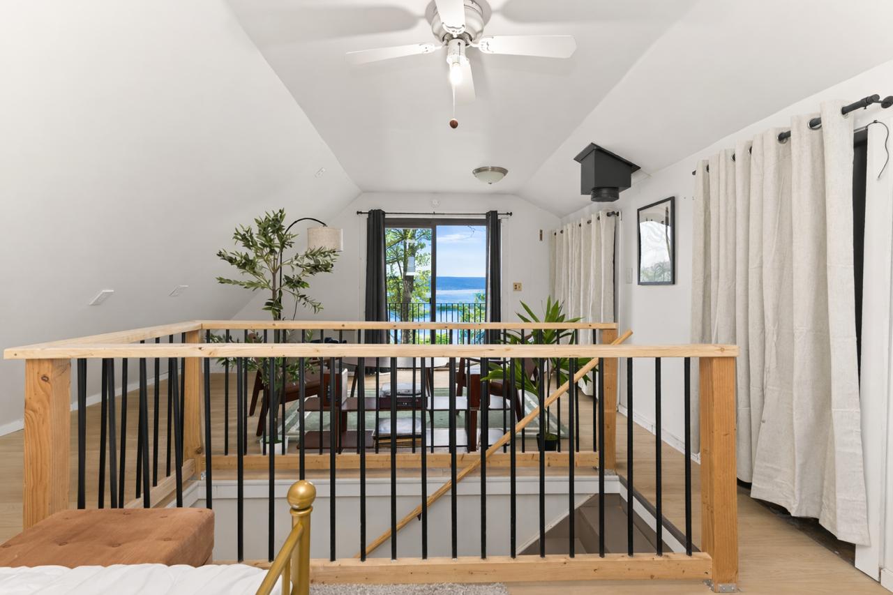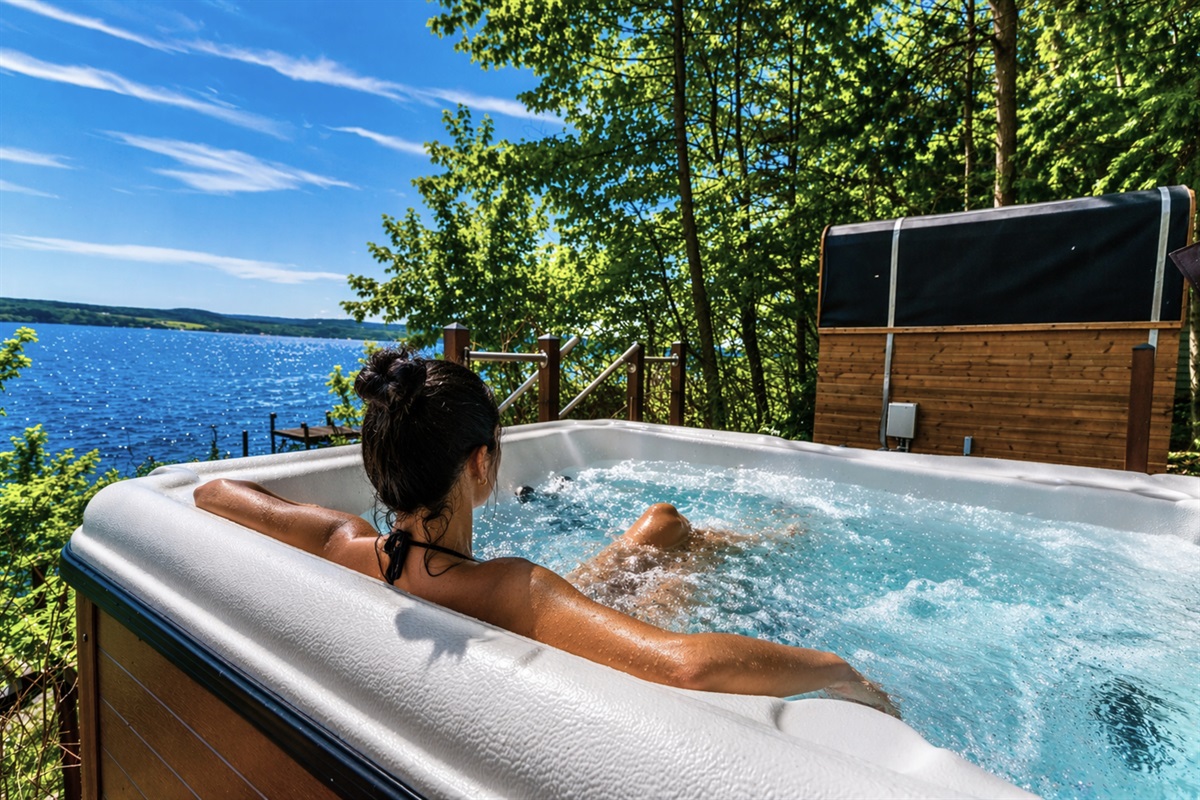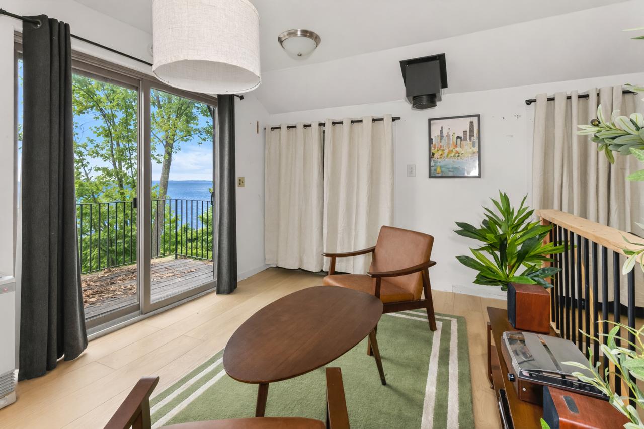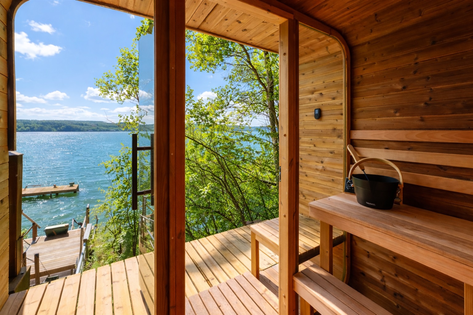 Outside, the property offers direct lakefront access along with multiple spaces to unwind. Guests can enjoy the hot tub overlooking the water, relax in the barrel sauna, or take in the views from the deck. The setting is quiet and scenic, making it easy to spend most of your time right on the property.