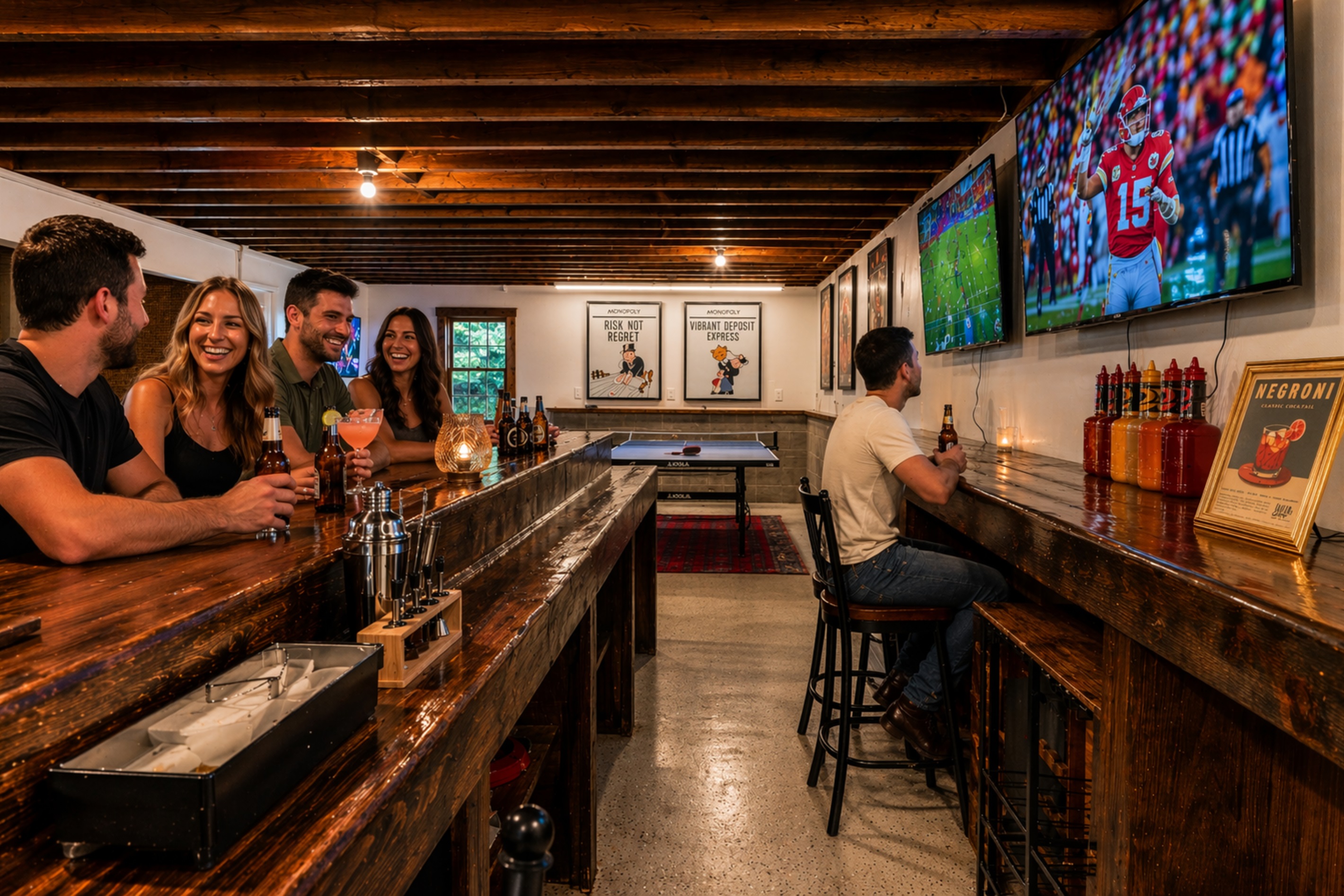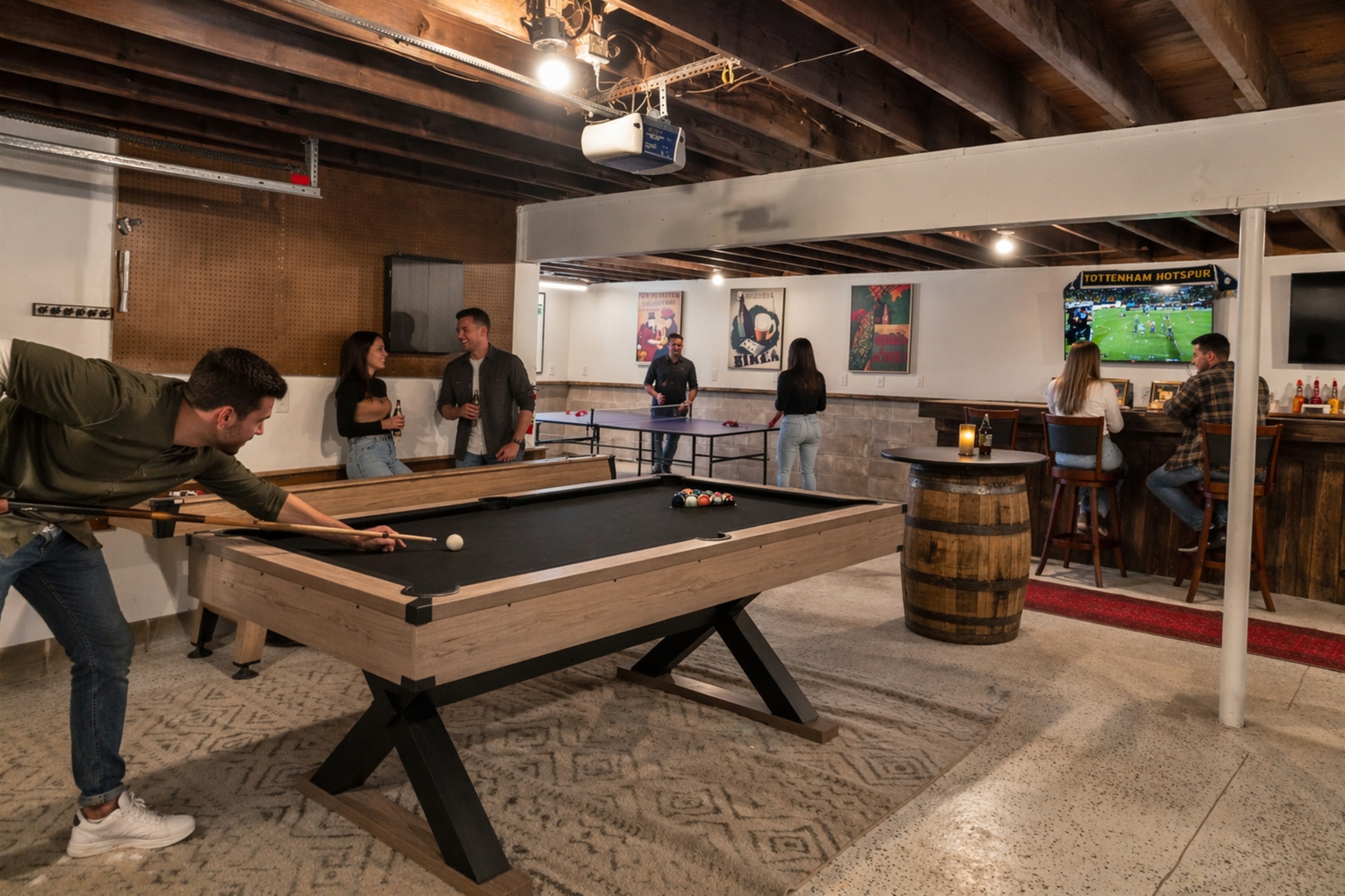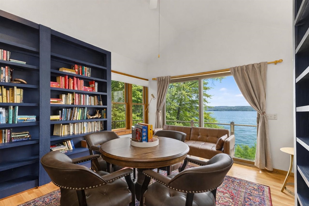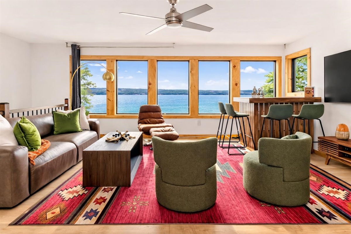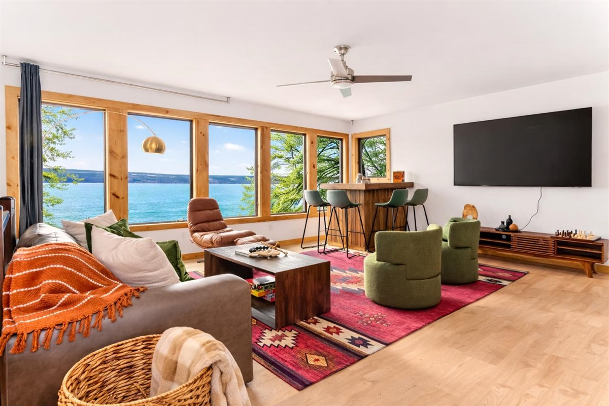 4 Bedrooms • 3 Bathrooms 3 Baths • Sleeps 1-10This lakefront retreat on Seneca Lake is designed for groups who want space, views, and built-in entertainment—not just a place to sleep. The property includes a two-story main house and a detached garage with additional sleeping and recreation space.