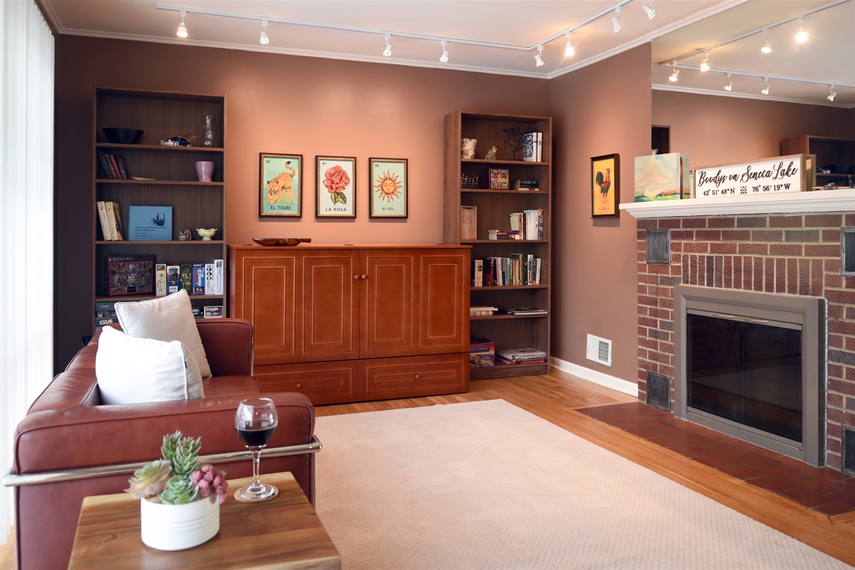 As you enter the home, you’ll step into the welcoming front foyer—a perfect spot to relax, read a book, or enjoy a game of board games with family and friends. (Note: The fireplace is not for guest use.)